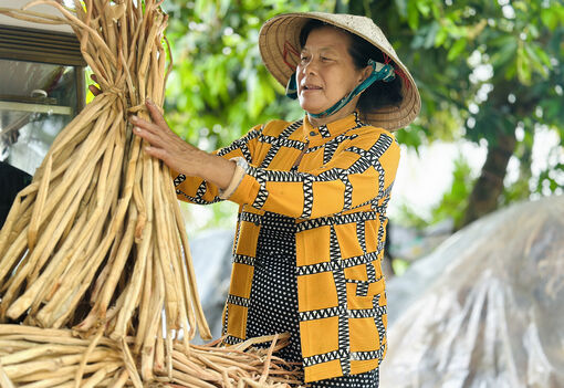 Nghề cắt lục bình ở Hòa Thuận góp phần tạo thêm việc làm, tăng thu nhập cho người dân nông thôn. Ảnh: BÍCH THÙY