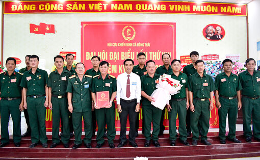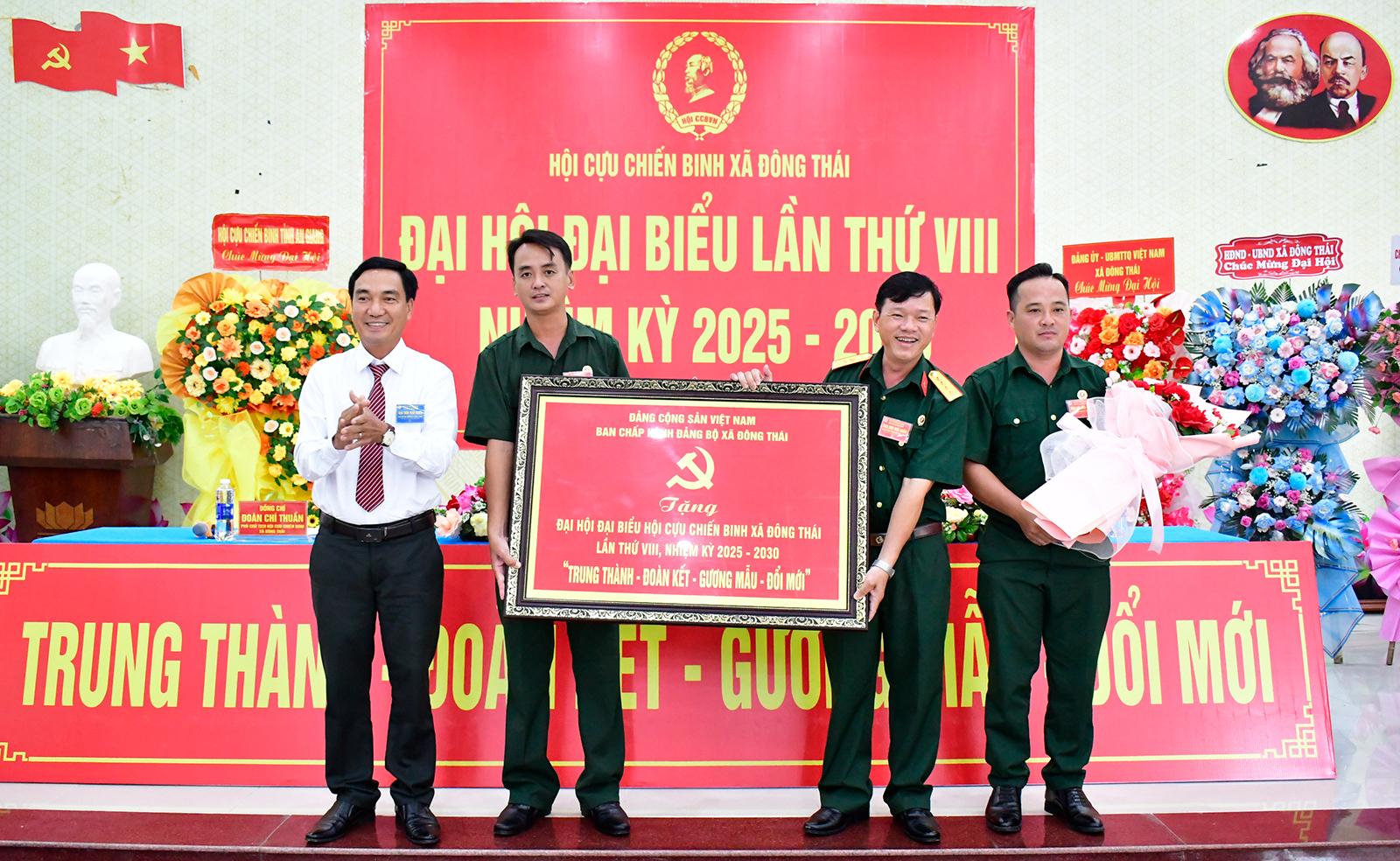 Lãnh đạo Hội Cựu chiến binh tỉnh An Giang và xã Đông Thái tặng hoa chúc mừng Ban Chấp hành Hội Cựu chiến binh xã Đông Thái.