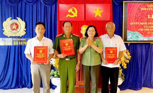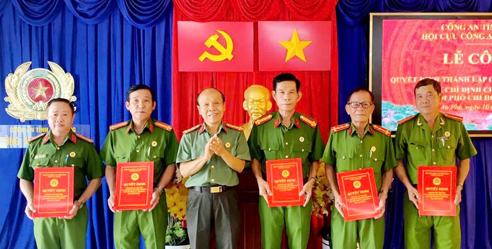 Hội Cựu Công an nhân dân tỉnh An Giang đã công bố và trao quyết định của hội về việc thành lập chi hội cựu công an nhân dân cấp cơ sở và chỉ định chi hội trưởng, chi hội phó Chi hội Cựu Công an nhân dân các xã: An Phú, Vĩnh Hậu, Nhơn Hội, Khánh Bình và Phú Hữu.