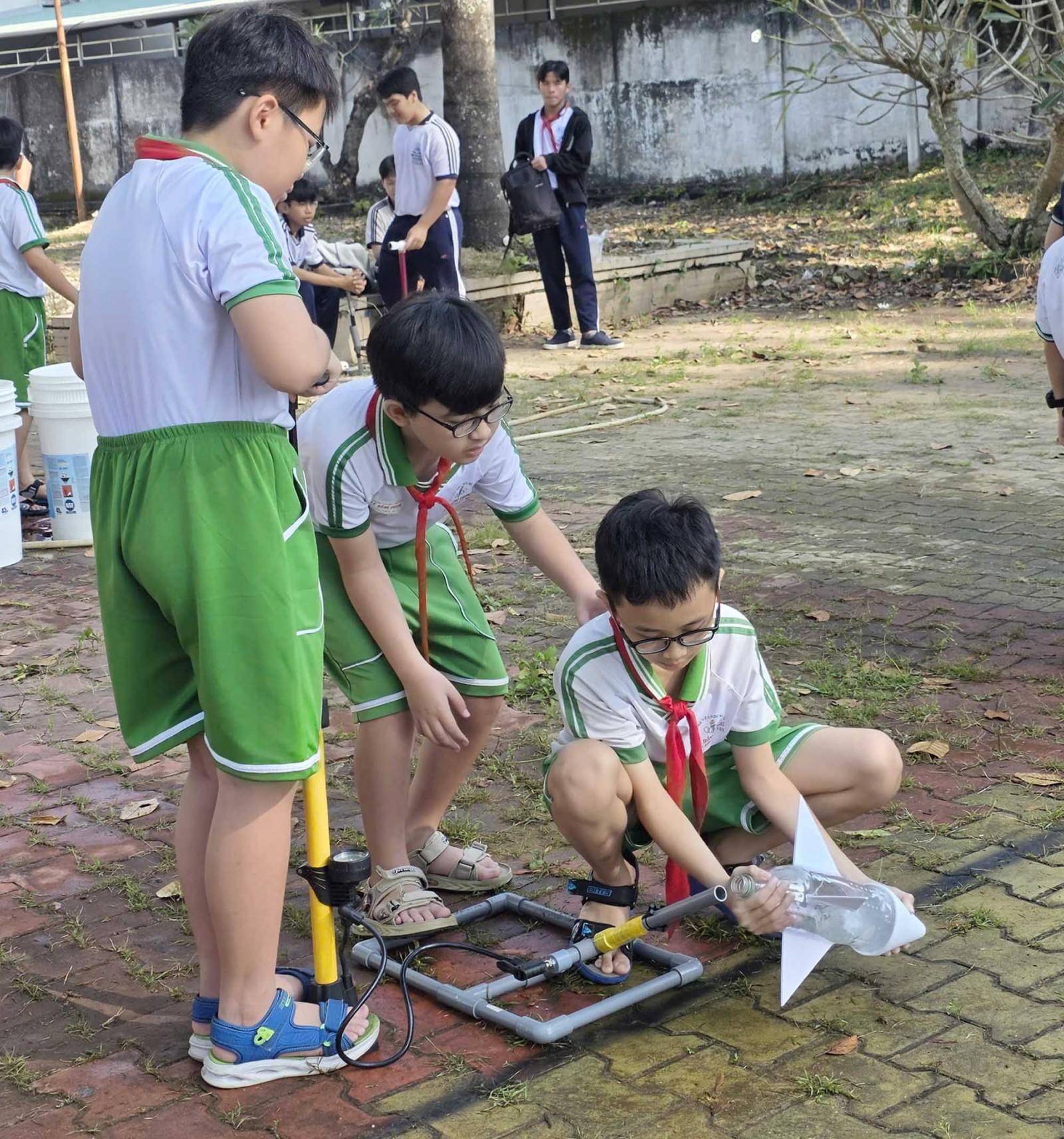 Học sinh thi lắp ráp và thực hành bắn tên lửa nước bắn tầm cao.