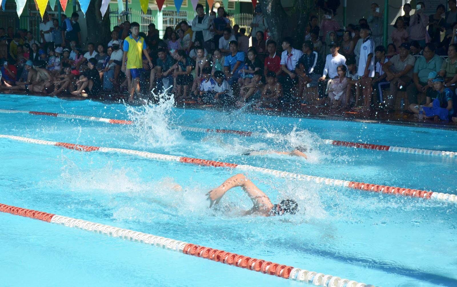 Học sinh thi đấu giải bơi lội thiếu niên nhi đồng.