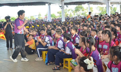 Thiếu nhi giao lưu với nghệ sĩ Trường Giang.