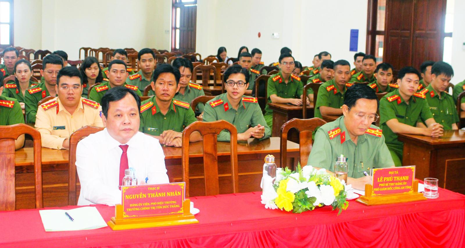 - Sáng 16/12, Trường Chính trị Tôn Đức Thắng phối hợp Công an tỉnh An Giang tổ chức lễ khai giảng lớp trung cấp lý luận chính trị hệ tập trung A102. Đại tá Lê Phú Thạnh, Phó Giám đốc Công an tỉnh An Giang; Phó Hiệu trưởng Trường Chính trị Tôn Đức Thắng Nguyễn Thành Nhân tham dự buổi lễ.