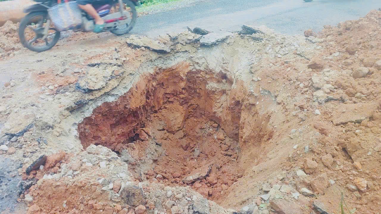 Hiện trạng sụt lún cống khá nguy hiểm trên tuyến đường kêng ngang.
