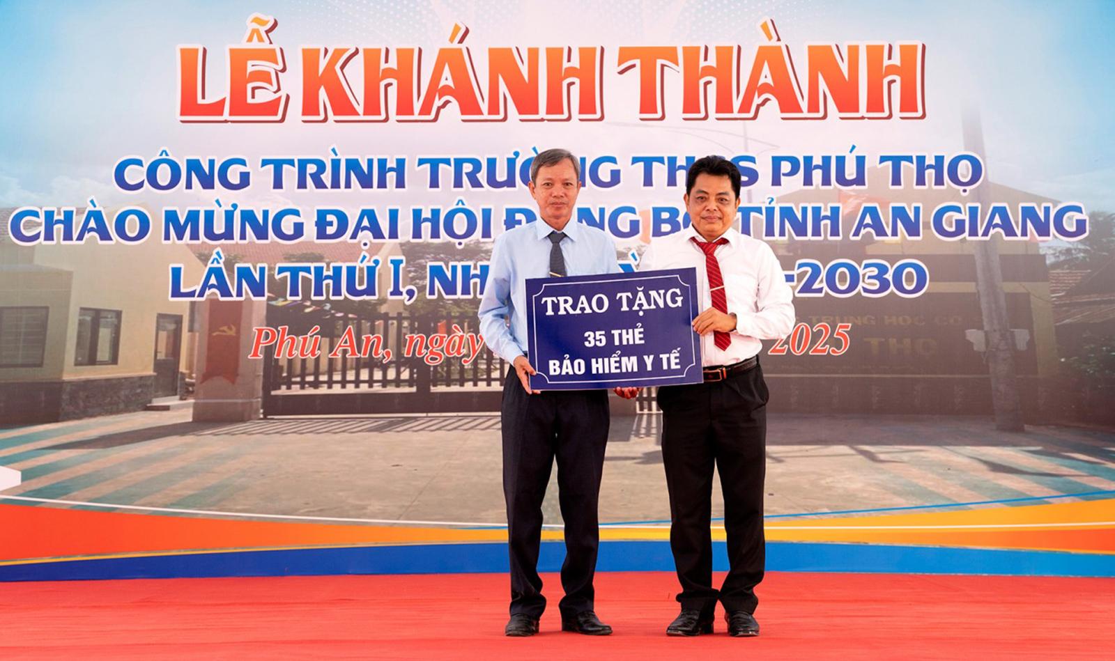 Các đơn vị tham gia xây dựng công trình Trường Trung học cơ sở Phú Thọ tặng 35 thẻ bảo hiểm y tế, mỗi thẻ trị giá 632.000 đồng, cho học sinh có hoàn cảnh khó khăn.