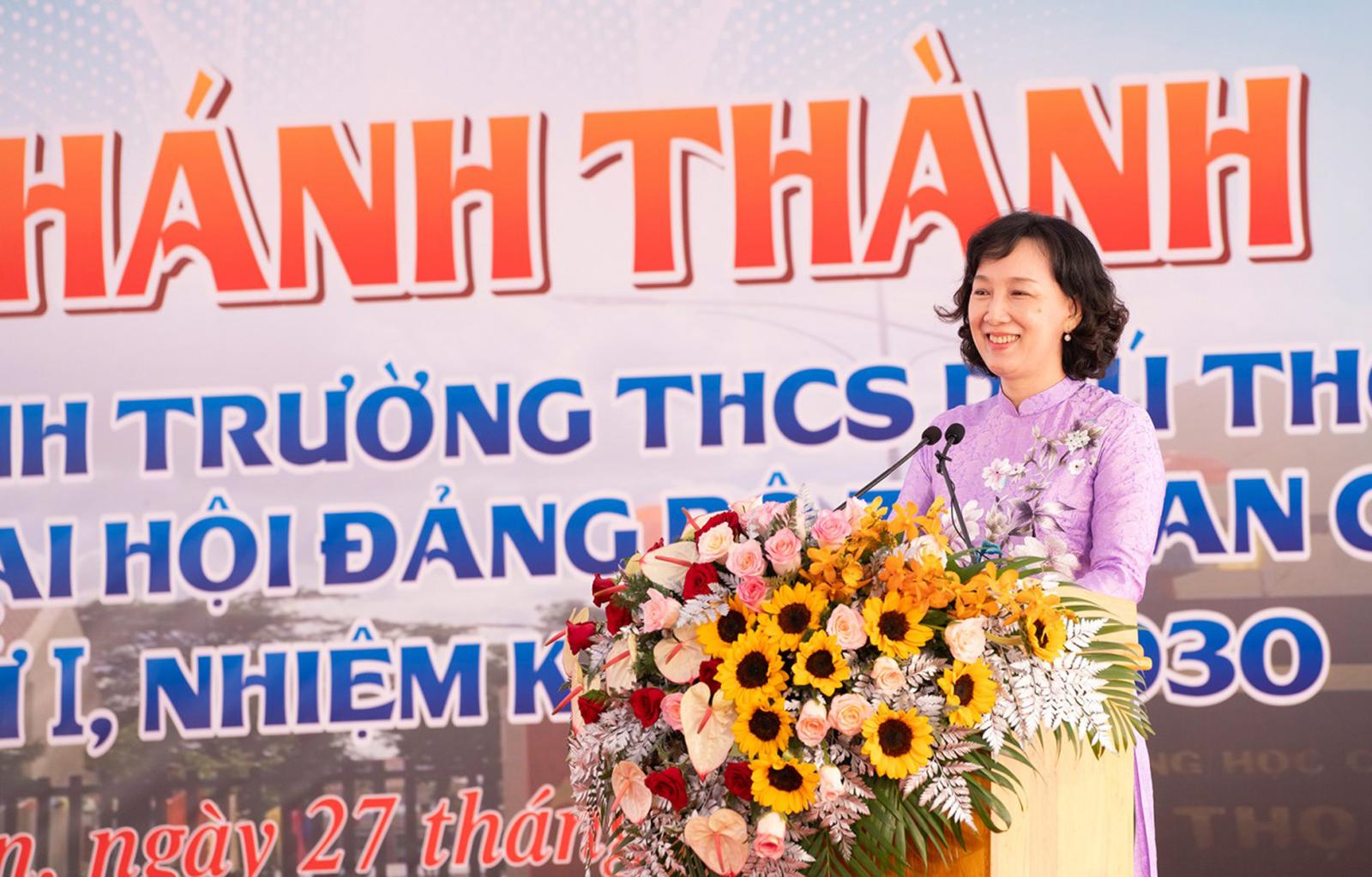 Đồng chí Nguyễn Thị Minh Thúy đề nghị sau lễ khánh thành, ngành giáo dục và đào tạo tiếp tục quan tâm bố trí, bồi dưỡng đội ngũ cán bộ, giáo viên đảm bảo về trình độ chuyên môn, nghiệp vụ, nâng cao chất lượng dạy và học.