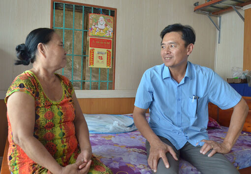 Ông Trương Hữu Phúc đến thăm, động viên gia đình bà Đặng Thị Hải. Ảnh: MI NI
