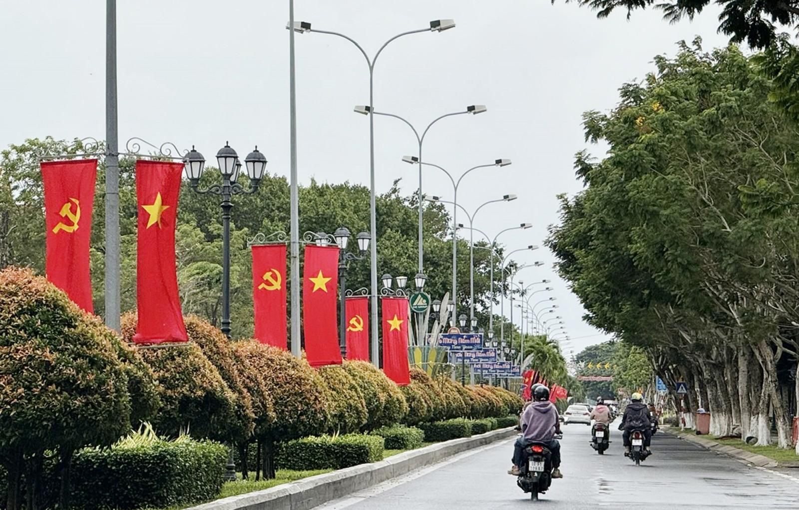 Đường Tôn Đức Thắng rực rỡ sắc cờ chào mừng đại hội.