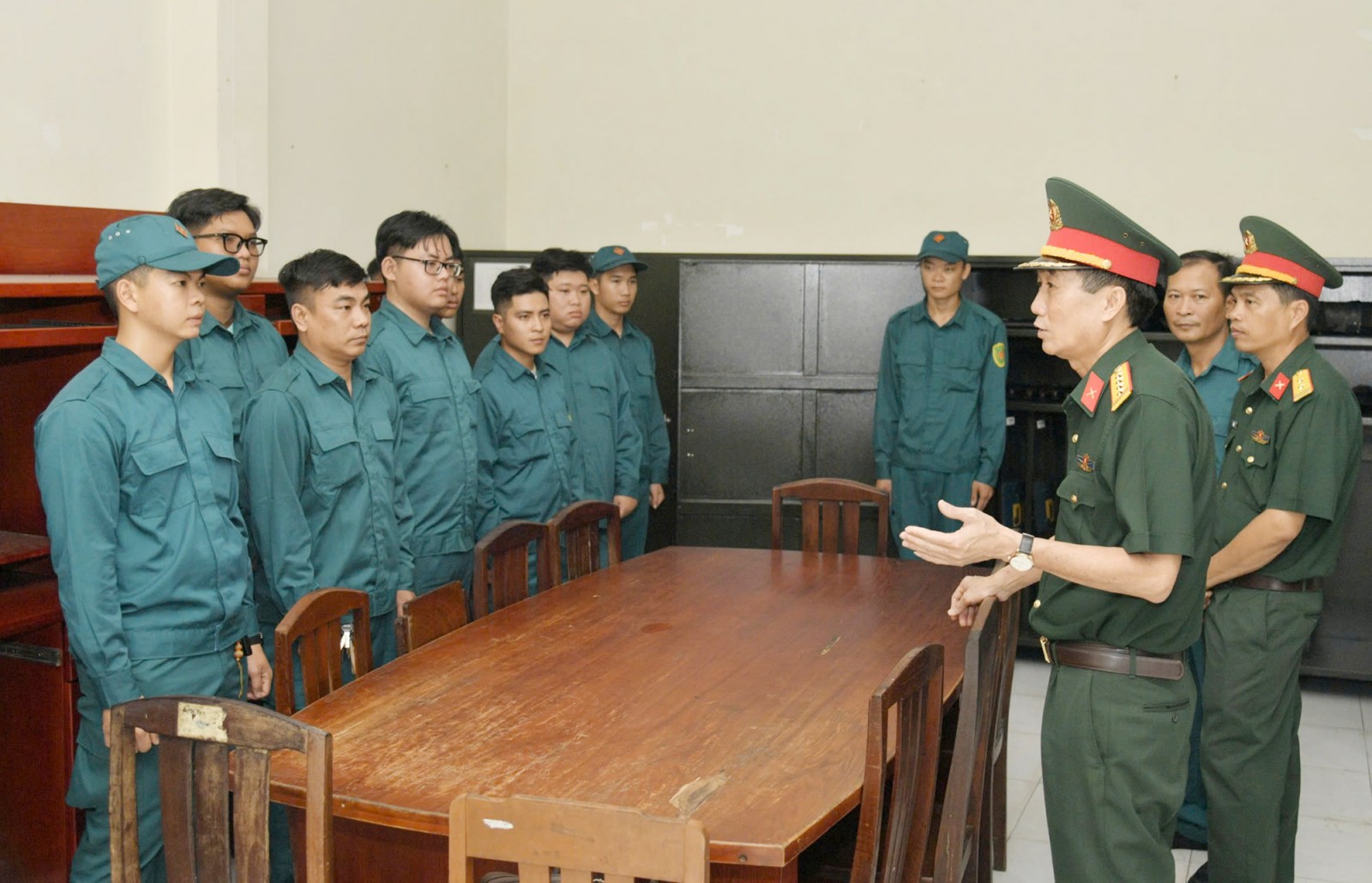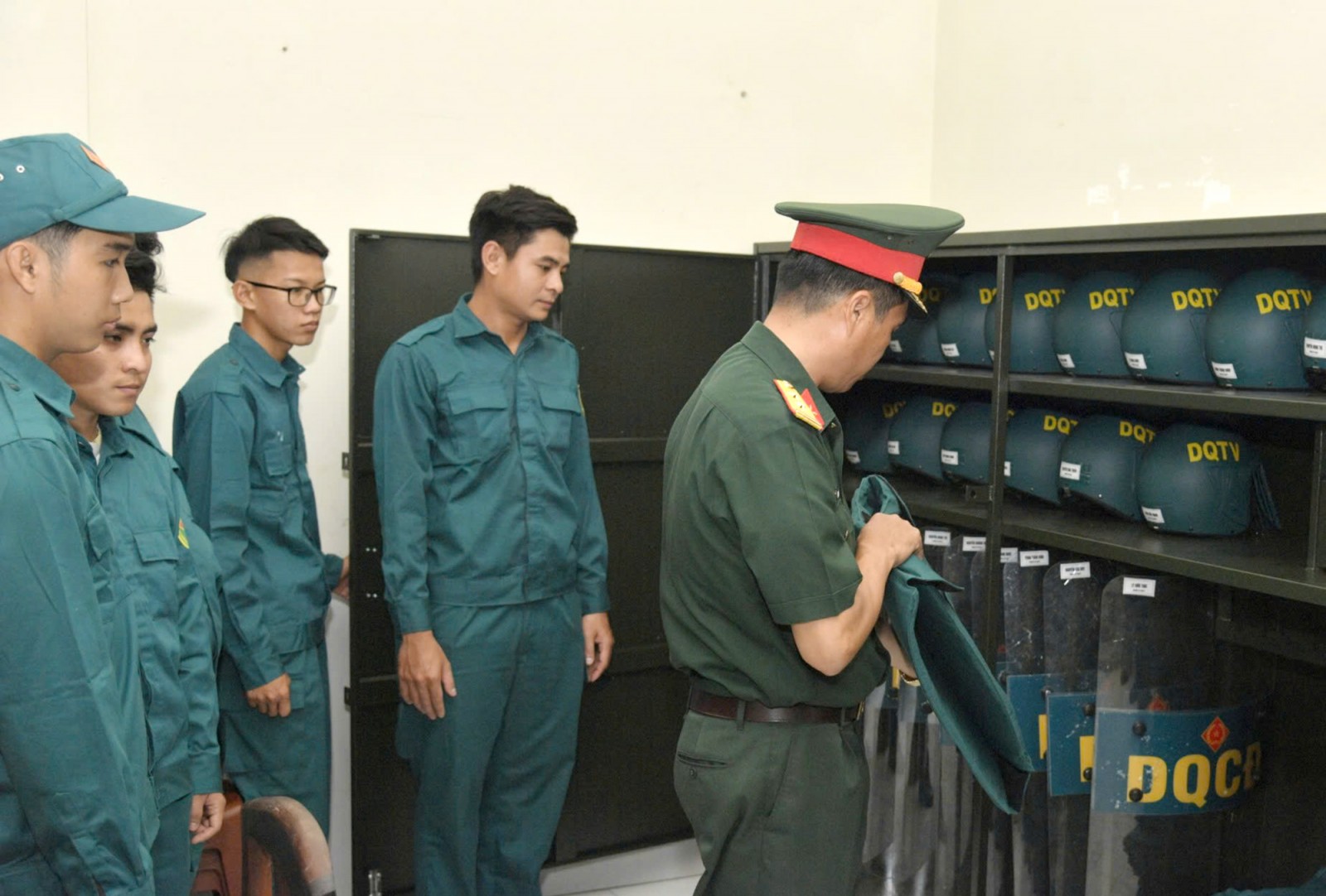 Đoàn công tác kiểm tra công cụ hỗ trợ thực hiện nhiệm vụ của lực lượng dân quân tự vệ.