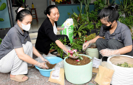 Mỗi ngày, tiệm hoa của chị thải ra từ 60 - 100kg rác hữu cơ gồm cành, lá, cánh hoa héo, phần hoa cắt bỏ… Lượng rác này trước kia chị Tâm thuê người thu gom, tốn chi phí và tiềm ẩn nguy cơ ô nhiễm. Sau khi tham gia lớp tập huấn của Hội Liên hiệp Phụ nữ phường Rạch Giá, chị áp dụng ngay phương pháp ủ rác hoa thành đất hữu cơ. Sau 3 tháng, lượng rác cần xử lý giảm mạnh, đồng thời giúp chị tiết kiệm đáng kể chi phí mua đất, phân bón cho cây.