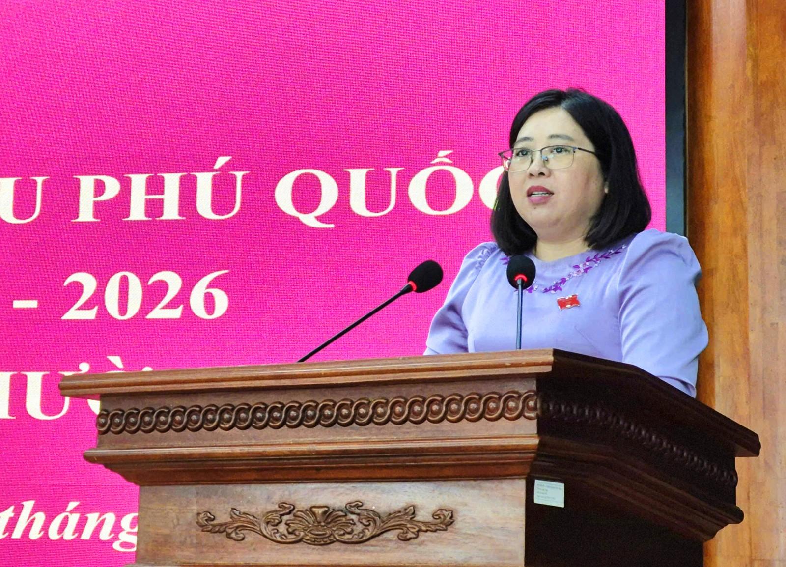 Đại biểu HĐND tỉnh, Phó Bí thư Đảng ủy, Chủ tịch HĐND đặc khu Phú Quốc phát biểu khai mạc kỳ họp.