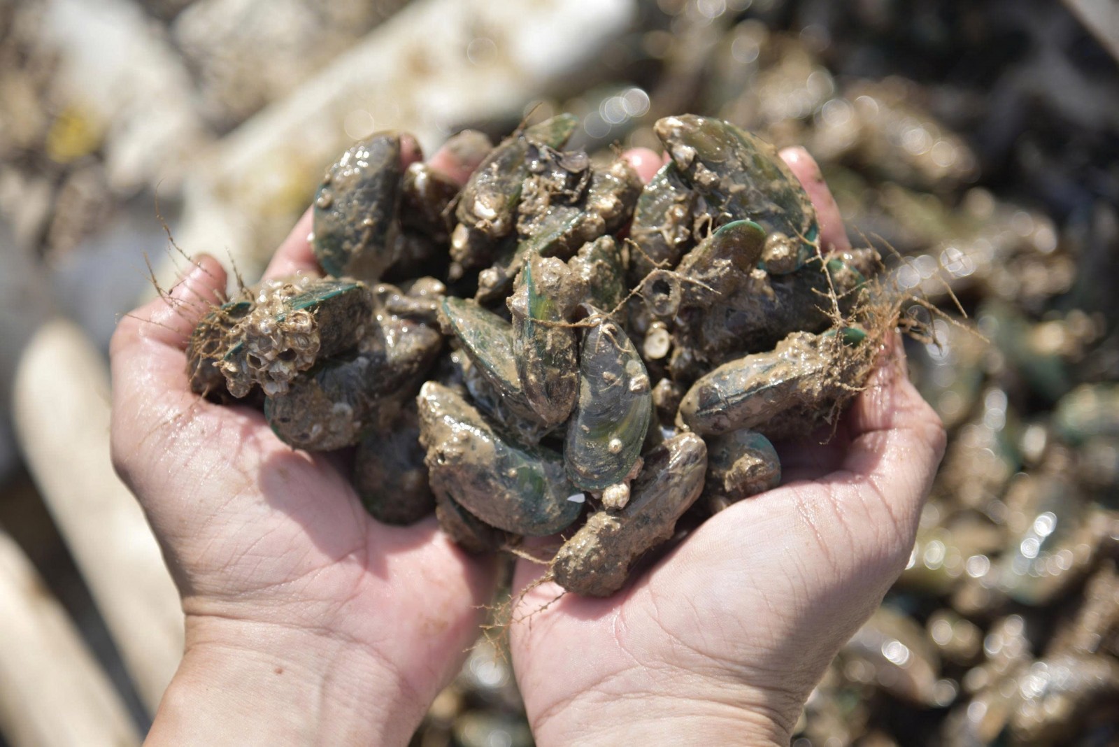 Vẹm xanh nuôi từ 11 - 12 tháng sẽ cho thu hoạch. Ảnh: ĐẶNG LINH