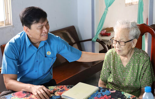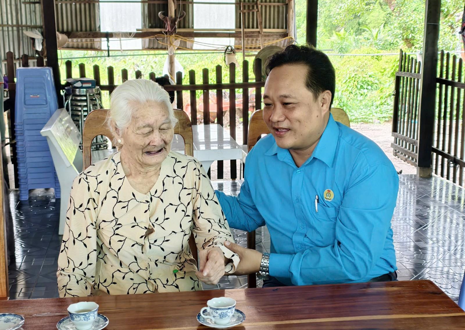 Chủ tịch Liên đoàn Lao động tỉnh An Giang Đỗ Trần Thịnh thăm Mẹ Việt Nam Anh hùng Dương Thị Nhiều, ngụ xã Vĩnh Hòa Hưng.