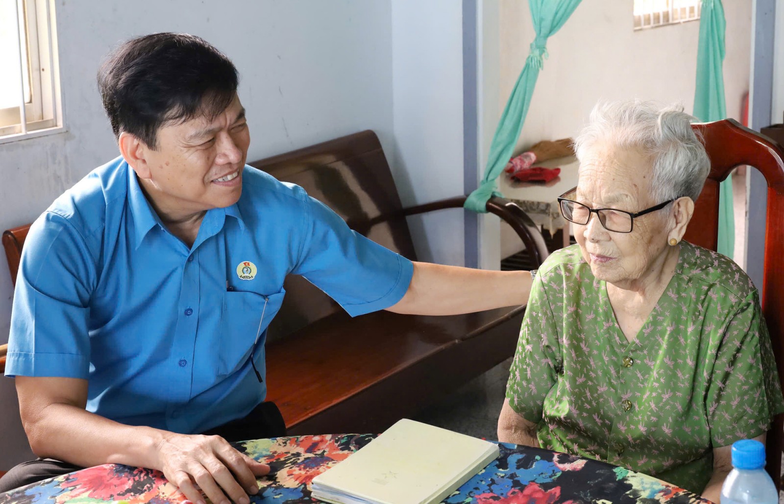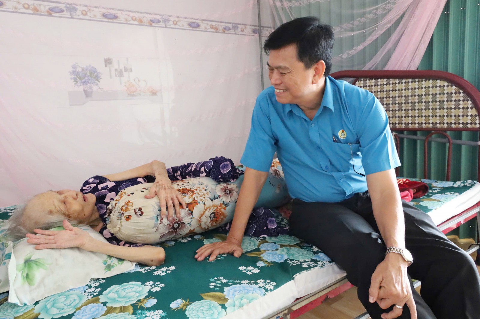 Phó Chủ tịch Liên đoàn Lao động tỉnh An Giang Phạm Văn Đằng thăm Mẹ Việt Nam Anh hùng La Thị Lên, ngụ xã Vĩnh Thạnh Trung.