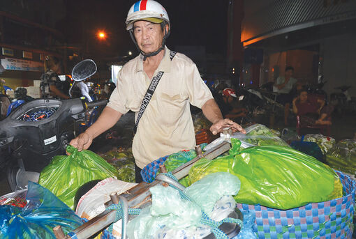 Mỗi đêm, ông Sáu Cựa có mặt ở chợ từ 23 giờ, lấy rau từ các thương lái rồi chạy xe chở về chợ Tắc Ráng bán. Công việc cứ lặp đi lặp lại nhiều năm qua bất kể ngày lễ, tết, nắng mưa hay gió lạnh. “Tôi tranh thủ lúc vắng khách chợp mắt, ngày ngủ 2 - 3 tiếng. Có lúc tôi vừa bán hàng vừa ngủ gục”, ông Sáu Cựa vừa nói vừa rướn người đỡ bọc rau nặng trĩu. Ông bảo: “Ngày nào không ế, kiếm được 200.000 - 300.000 đồng là mừng lắm. Tôi trả tiền trọ, ăn uống tiết kiệm cũng đủ sống qua ngày…”.