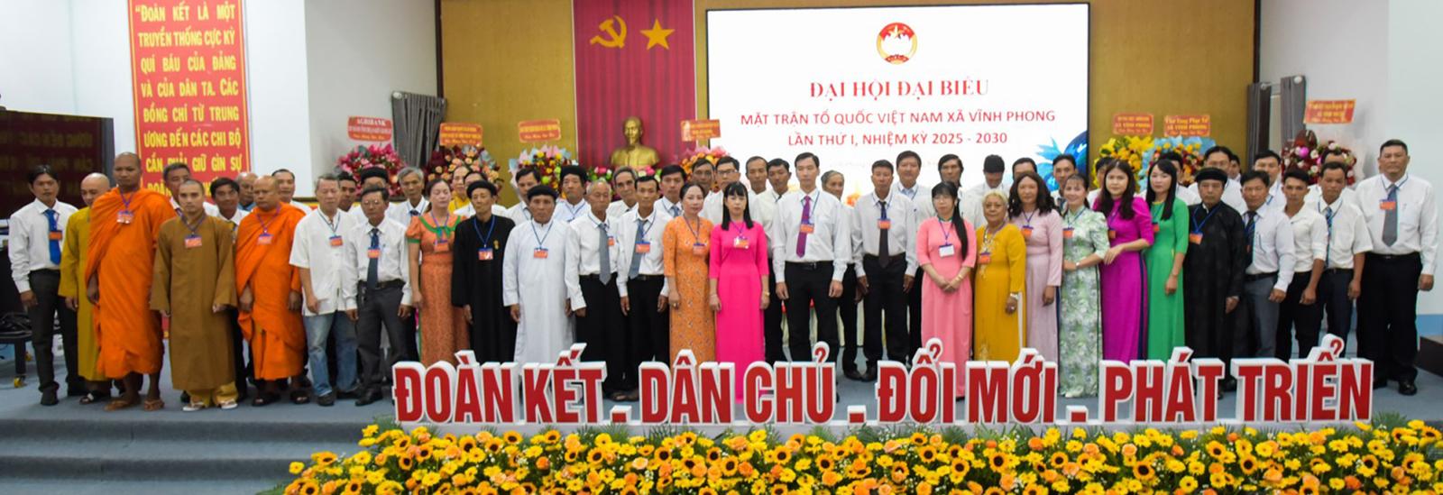 Đại hội đại biểu MTTQ Việt Nam xã Vĩnh Phong lần thứ I, nhiệm kỳ 2025 - 2030 diễn ra thành công tốt đẹp. Đại hội hiệp thương cử Ủy ban MTTQ Việt Nam xã gồm 61 ủy viên (khuyết 4 ủy viên). Tại phiên họp đầu tiên, Ủy ban MTTQ Việt Nam xã hiệp thương cử Ban Thường trực 5 vị, gồm Chủ tịch và 4 Phó Chủ tịch. Đồng chí Trần Sông Hồng giữ chức Chủ tịch Ủy ban MTTQ Việt Nam xã Vĩnh Phong lần thứ I.