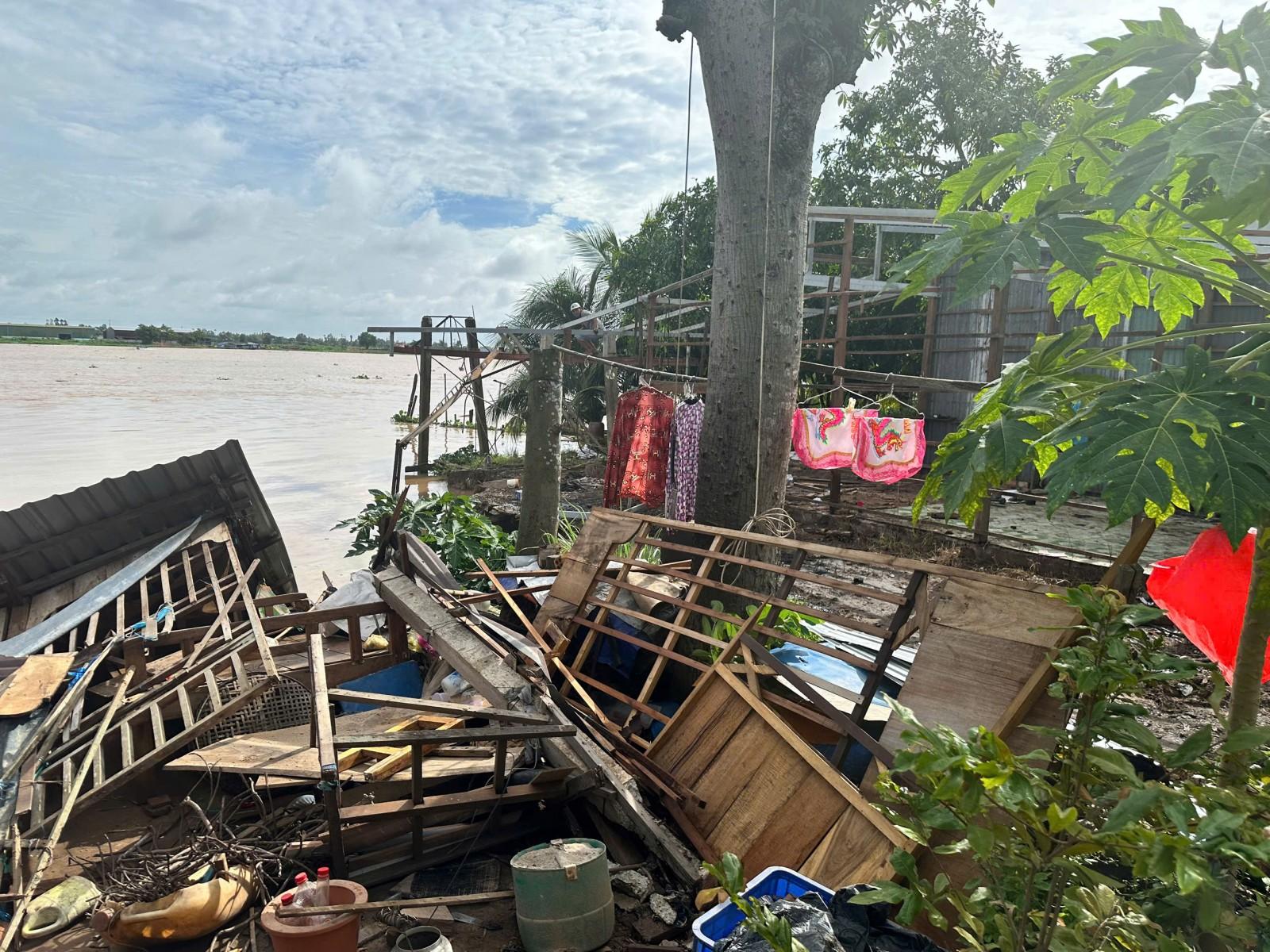 Một căn nhà của người dân ở ấp Mỹ Thuận, xã Mỹ Hòa Hưng bị sập do sạt lở sáng ngày 4/9.