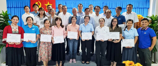 Ban tổ chức lớp bồi dưỡng và lãnh đạo Hội Nhà báo Việt Nam tỉnh An Giang chụp ảnh lưu niệm cùng các học viên.