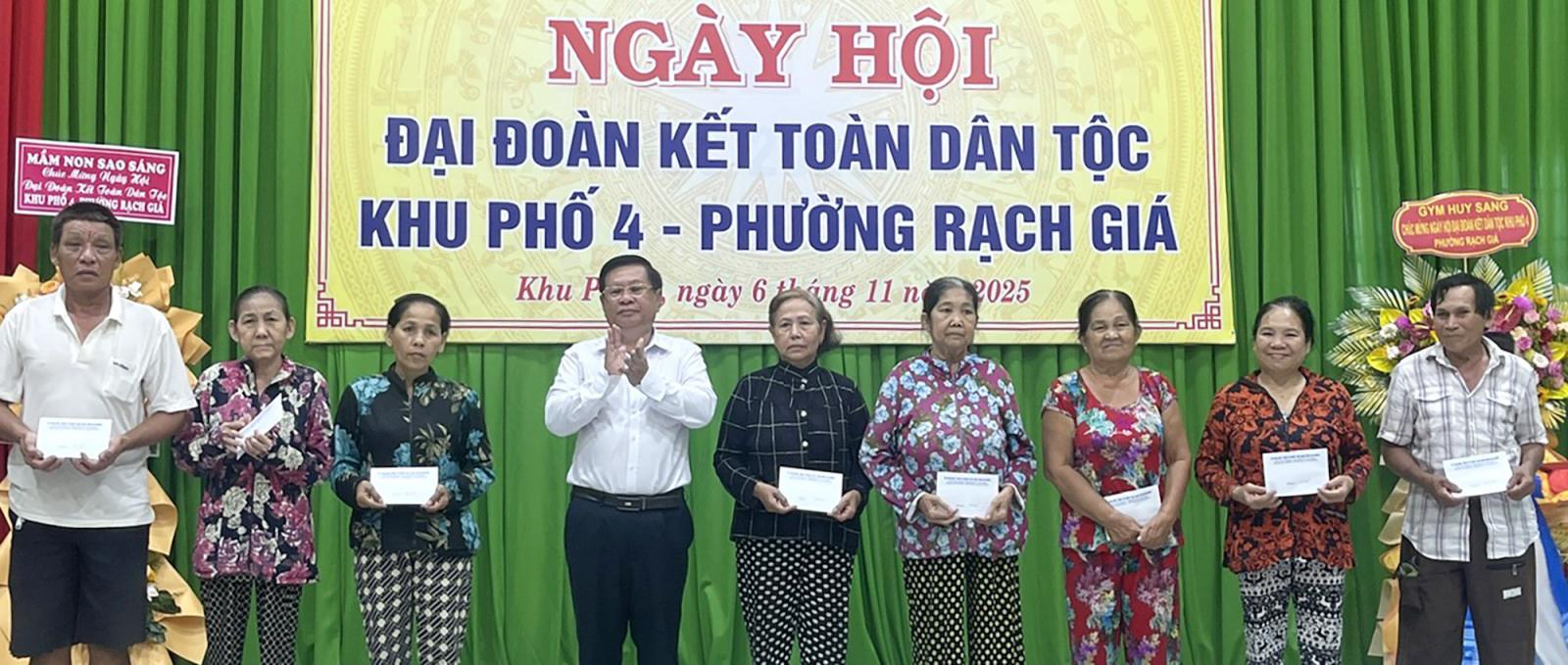Ngày hội Đại đoàn kết toàn dân tộc Khu phố 4 (phường Rạch Giá) là 1 trong 16 khu dân cư, liên khu dân cư tổ chức ngày hội điểm của tỉnh. Đại biểu và Nhân dân tổ chức, tham gia các trò chơi dân gian, biểu dương các tập thể và cá nhân có thành tích tiêu biểu trong phong trào "Toàn dân đoàn kết xây dựng nông thôn mới, đô thị văn minh" năm 2025.