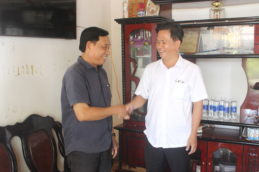Ông Nguyễn Thái Đông (bên phải) thăm hỏi, động viên ông Đặng Văn Sang sau quá trình điều trị bệnh. Ảnh: MỘC TRÀ