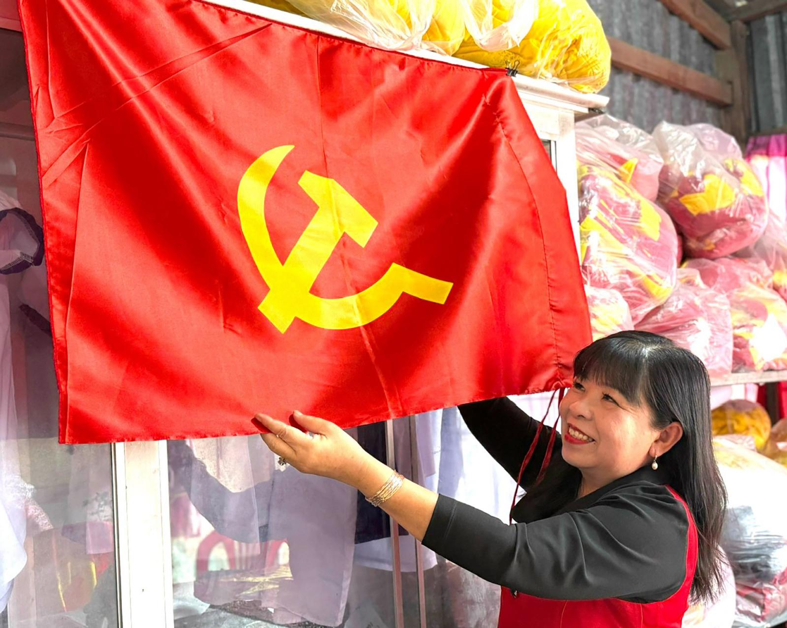 Những ngày này, trong căn nhà nhỏ của chị Nguyễn Kiều Thu ở xã Thạnh Đông (tỉnh An Giang), tiếng máy may vang lên đều đặn. Chị Thu cùng các cô, chú thợ may miệt mài cắt vải, may hình búa - liềm, ngôi sao vàng để hoàn thành hàng ngàn lá cờ Đảng, cờ Tổ quốc phục vụ các cơ quan, ban, ngành địa phương treo cờ chào mừng Đại hội Đảng bộ các cấp và kỷ niệm Quốc khánh 2/9.