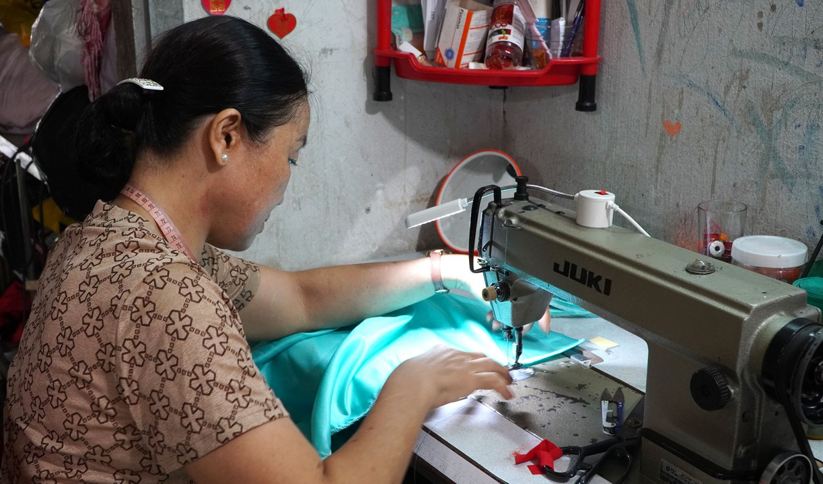 Nghề may cờ Đảng, cờ Tổ quốc giúp chị Thu gửi gắm tình yêu Tổ quốc và tạo công ăn việc làm cho lao động nông thôn.