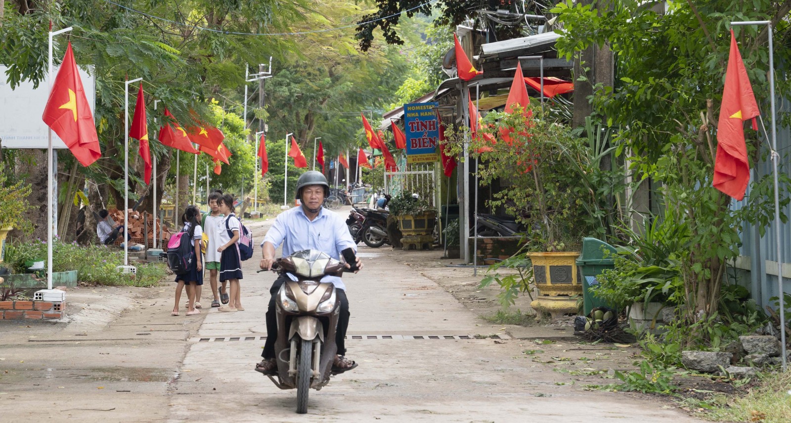 Đường sá quanh đảo được quan tâm đầu tư, tạo điều kiện cho người dân đi lại, học sinh đến trường thuận lợi hơn. Ảnh: LÊ TRUNG HIẾU