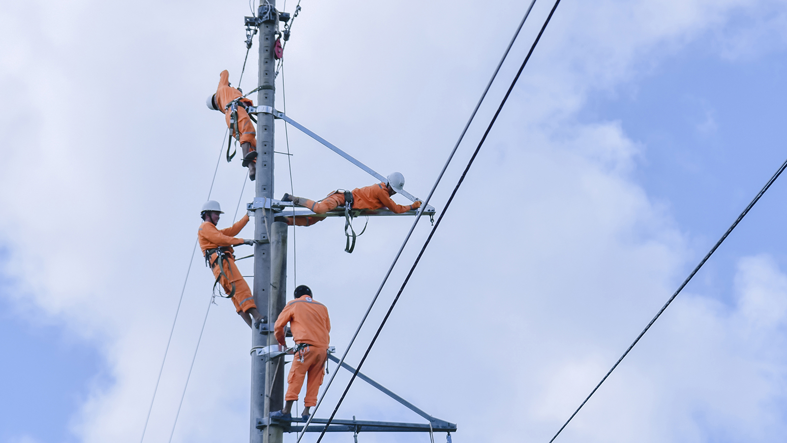 Công nhân Công ty Điện lực An Giang (PC An Giang) thi công nâng cấp đường dây 110kV Rạch Giá 2 - Minh Phong.