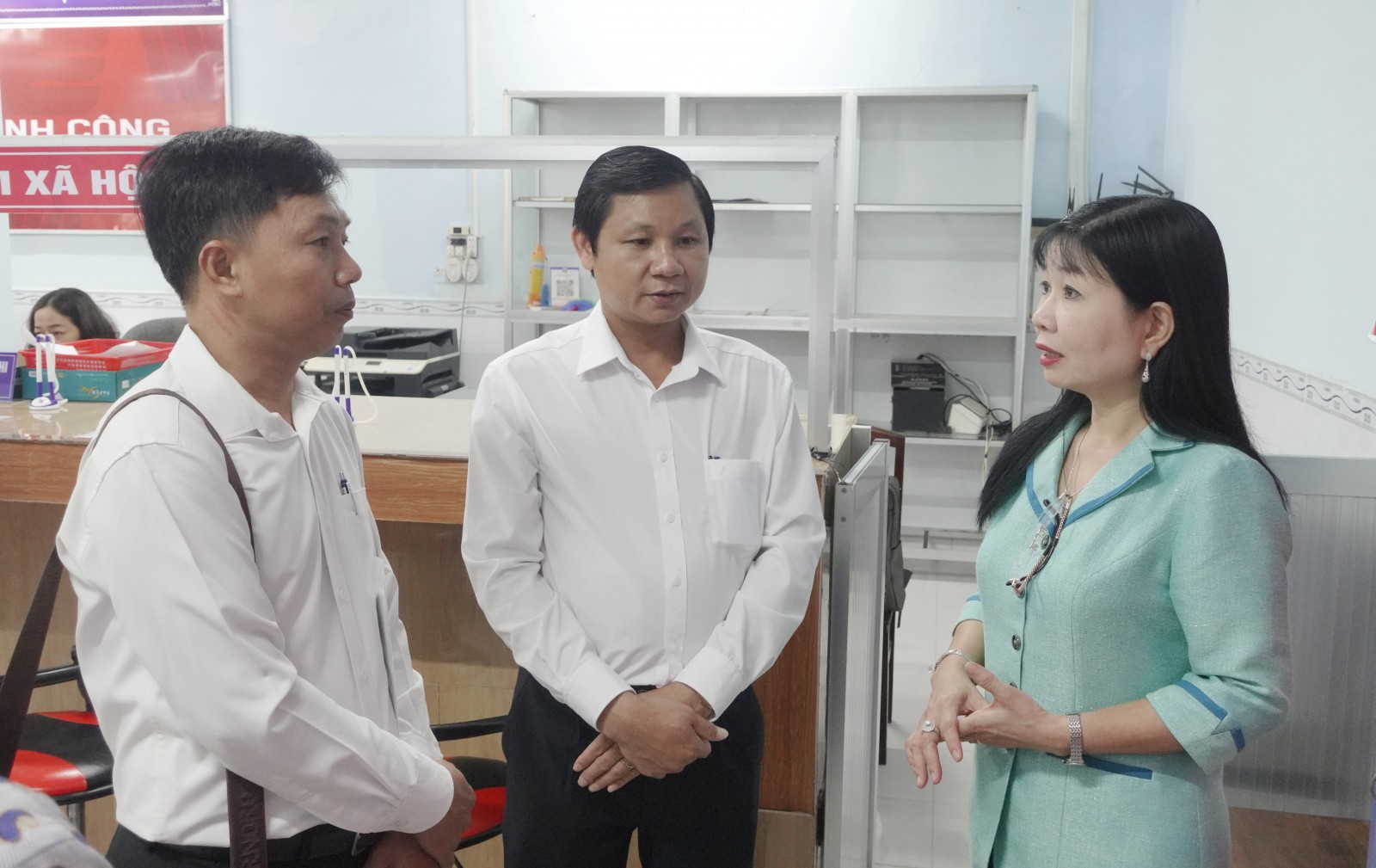 Phó Bí thư Tỉnh ủy, Chủ tịch Ủy ban MTTQ Việt Nam tỉnh An Giang Trần Thị Thanh Hương thăm hỏi, động viên cán bộ, viên chức thực hiện nhiệm vụ tại xã Giồng Riềng.
