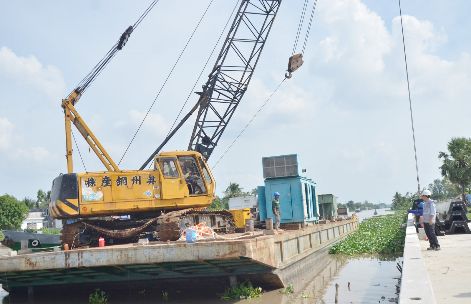 Dự án đường kênh Rạch Giá - Long Xuyên phía bờ nam đang thi công.