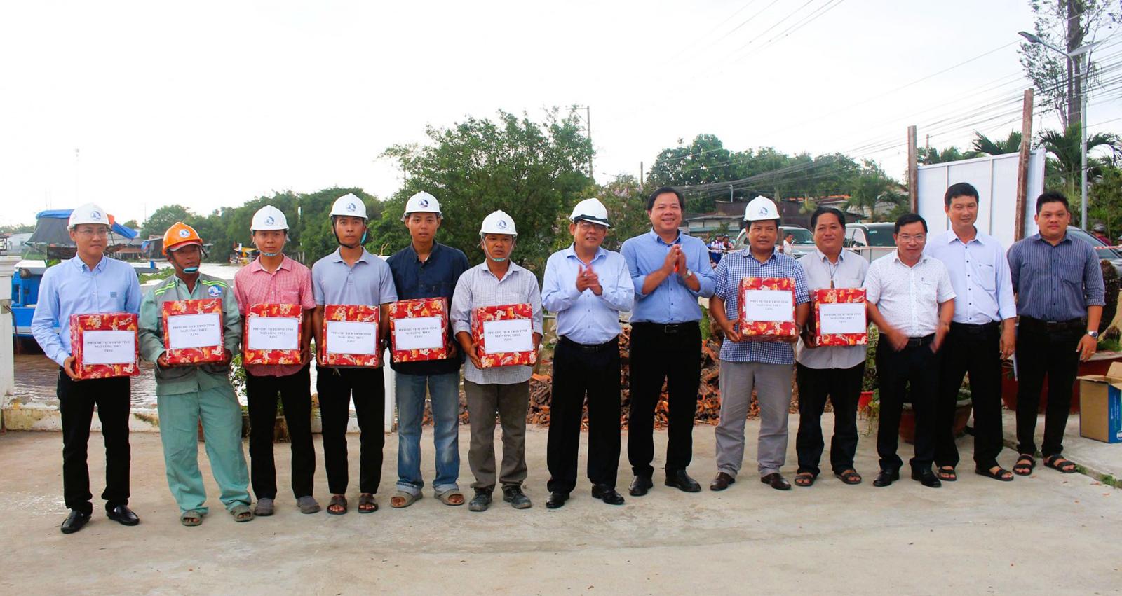 Tặng quà công nhân thi công tại công trình.