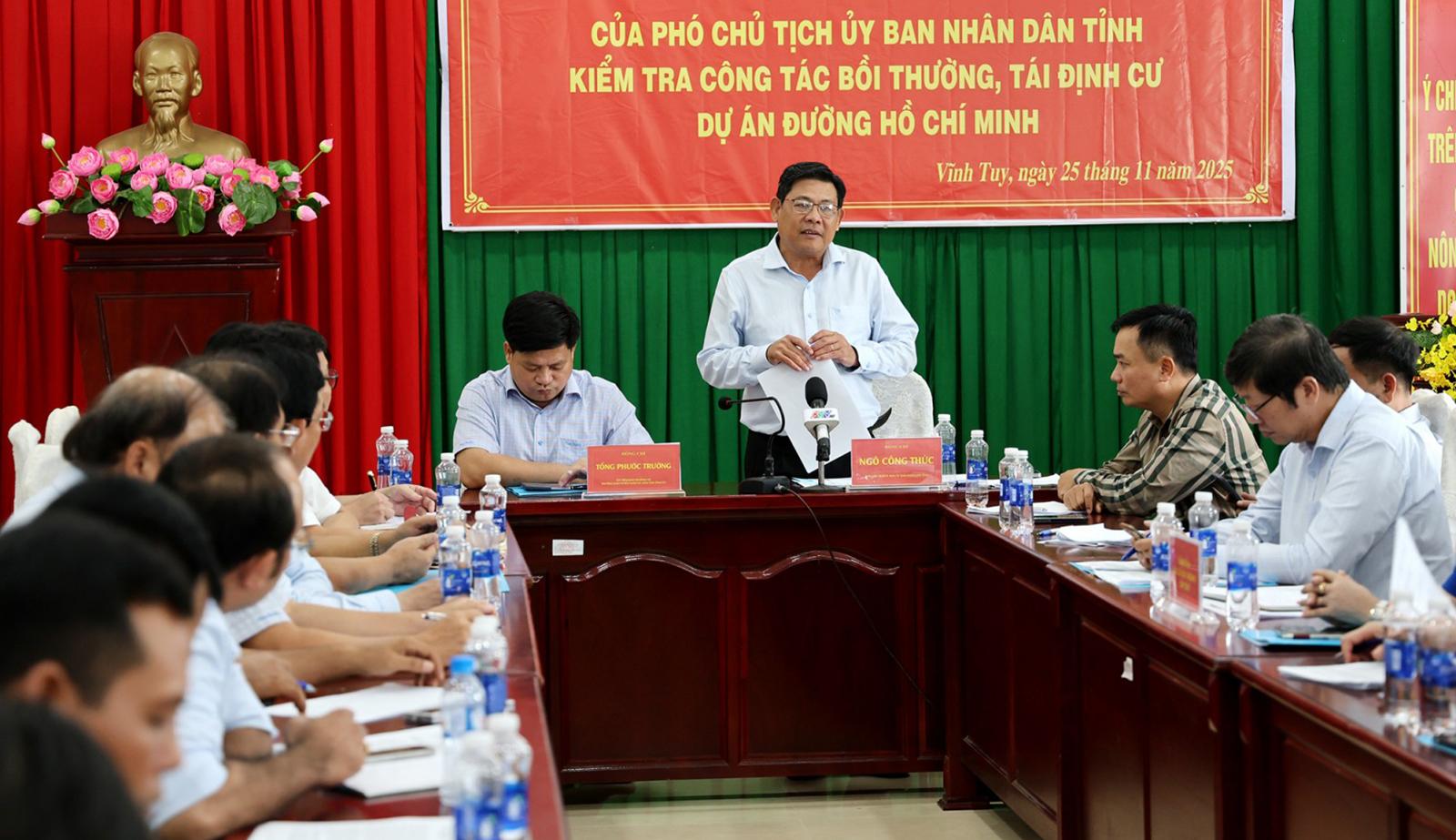 Phát biểu tại buổi làm việc với các sở, ngành, cơ quan, đơn vị và địa phương, Phó Chủ tịch UBND tỉnh An Giang Ngô Công Thức yêu cầu Khu Quản lý đường bộ IV đẩy nhanh tiến độ sửa chữa các đoạn hư hỏng của Quốc lộ 61; giao Sở Xây dựng kiến nghị Cục Đường bộ Việt Nam sớm phê duyệt Dự án Sửa chữa nền, mặt đường, hệ thống thoát nước và hoàn thiện hệ thống an toàn giao thông đoạn Km67+174 - Km77+ 250.