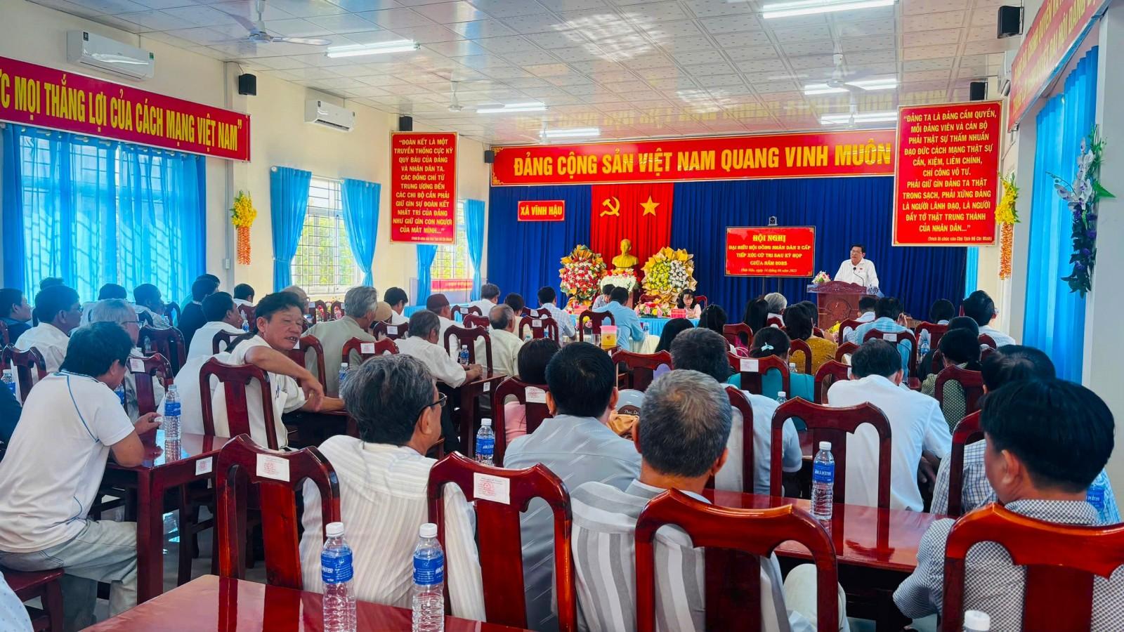 Cử tri xã Vĩnh Hậu đề nghị đầu tư, mở rộng đường 91C, đường liên ấp phục vụ lưu thông, vận chuyển hàng hóa và phát triển du lịch; xây dựng cầu nối Vĩnh Hậu và Vĩnh Trường (cũ), xây dựng kè chống sạt lở; đường dẫn từ cầu Đa Phước - Vĩnh Trường qua Châu Phong.