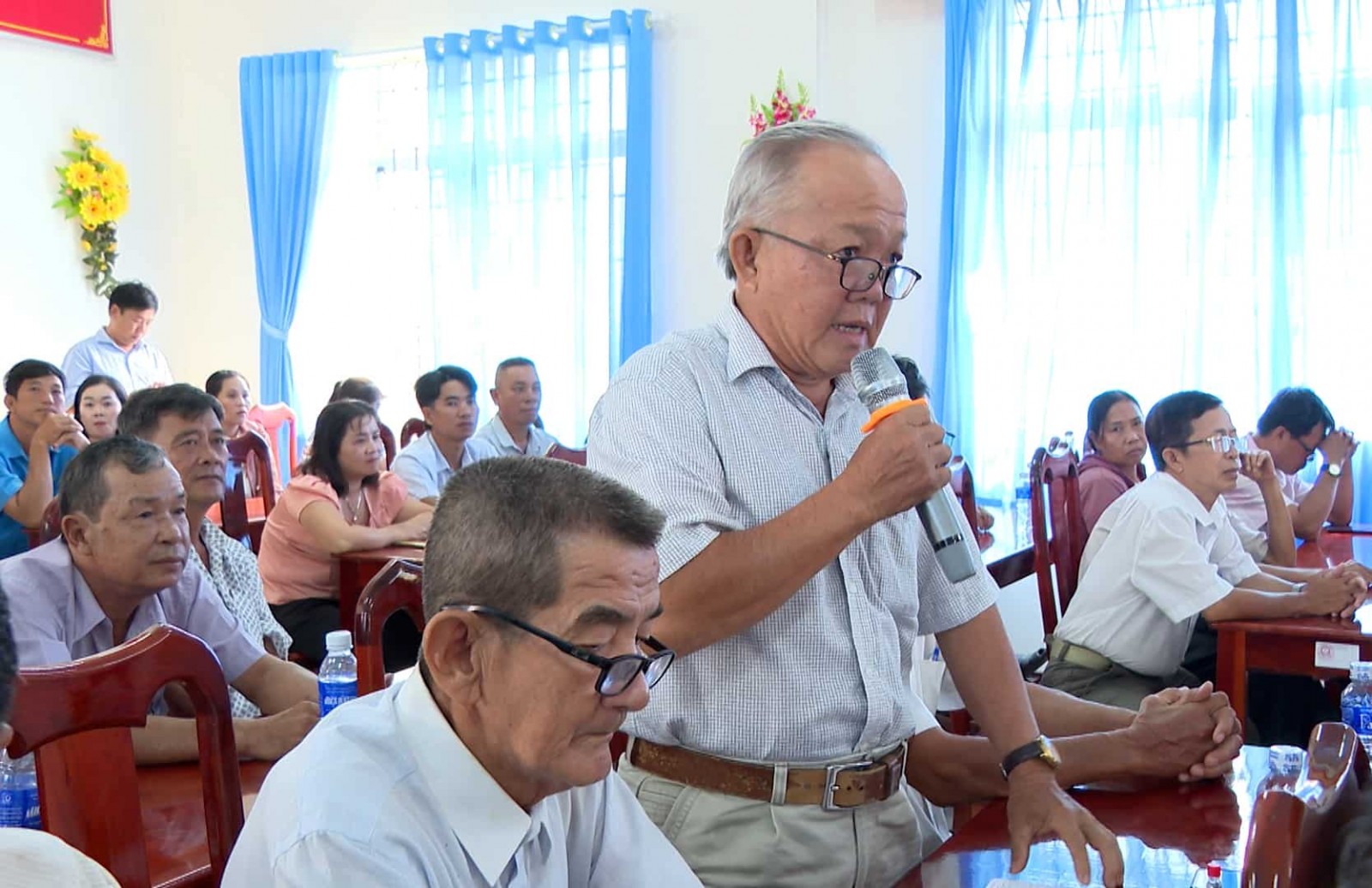 Cử tri xã Vĩnh Hậu nêu ý kiến tại buổi tiếp xúc.