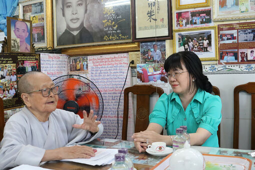 Phó Chủ tịch Ủy ban MTTQ Việt Nam tỉnh An Giang Hà Minh Trang đến thăm Ni trưởng Thích nữ Diệu Thông,