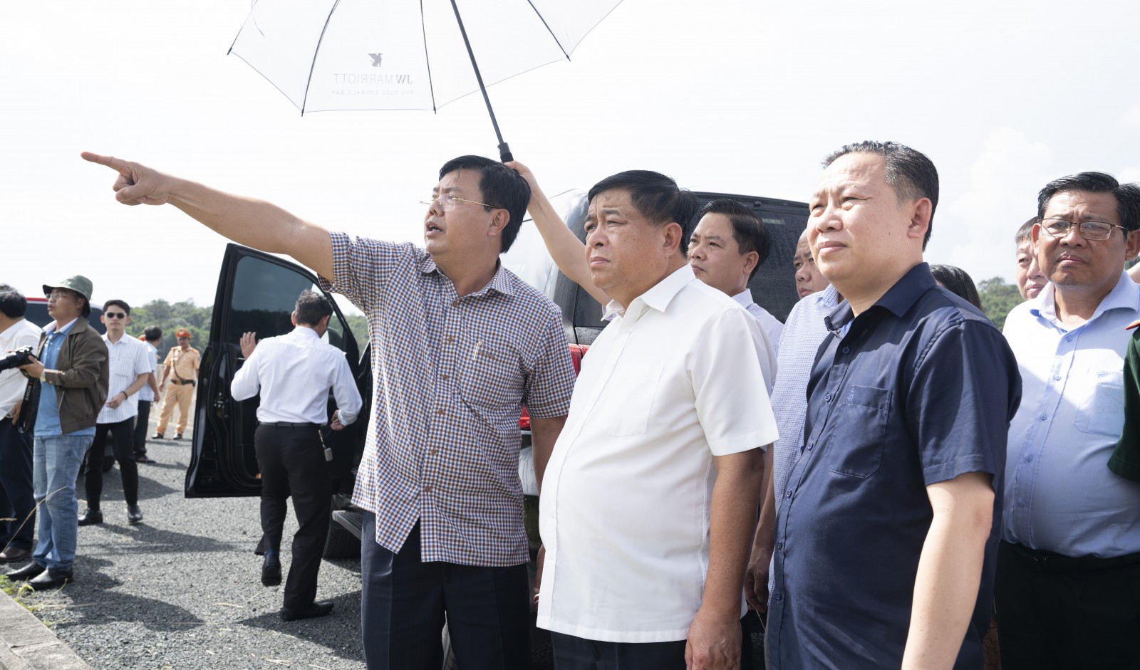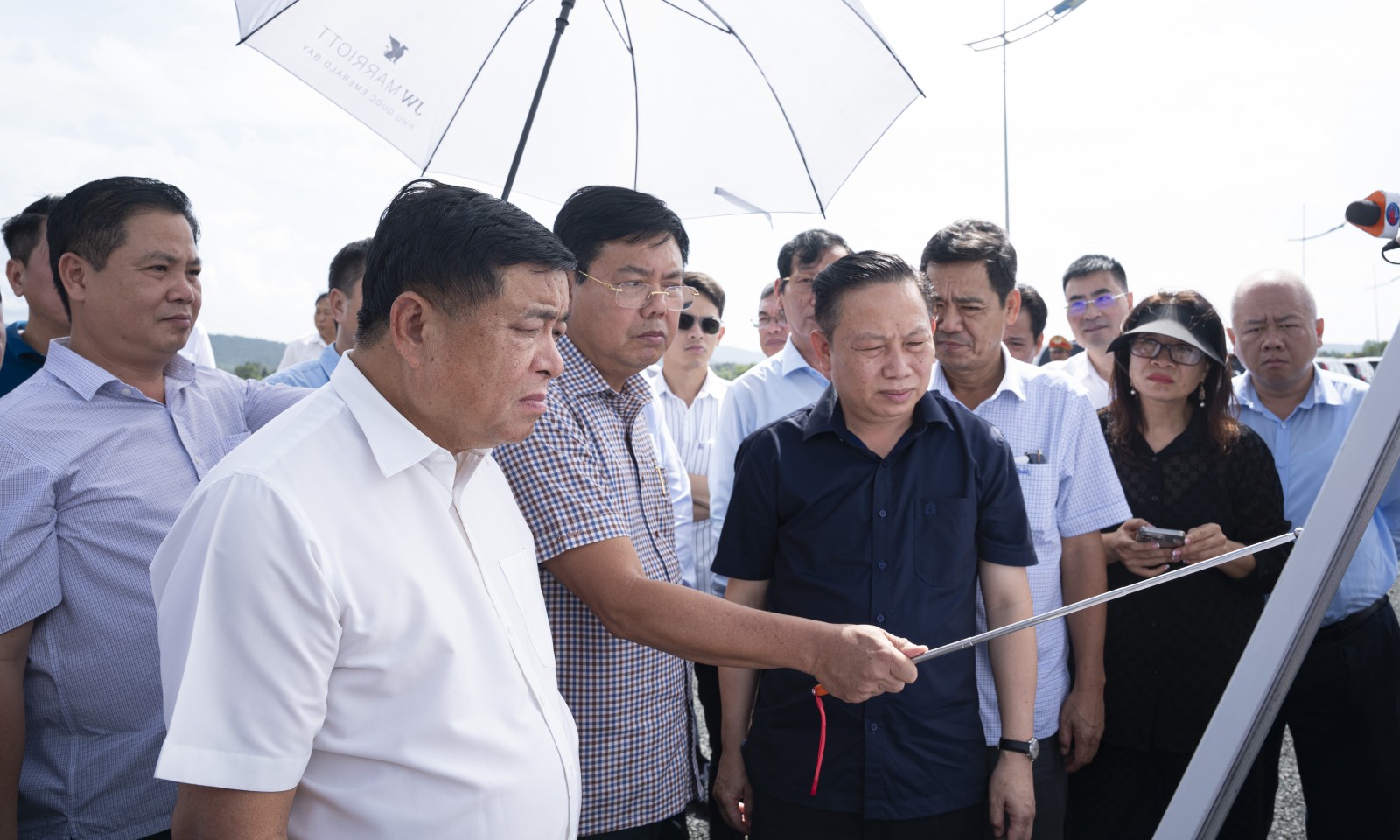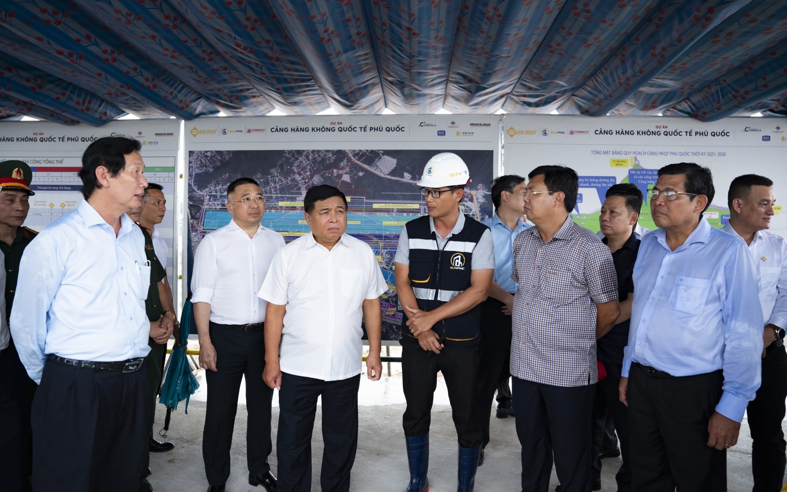 Phó Thủ tướng Chính phủ Nguyễn Chí Dũng và Bí thư Tỉnh ủy An Giang Nguyễn Tiến Hải, cùng lãnh đạo bộ, ngành Trung ương và tỉnh An Giang kiểm tra tiến độ thi công Dự án Cảng hàng không quốc tế Phú Quốc. (Ảnh: TRUNG HIẾU)
