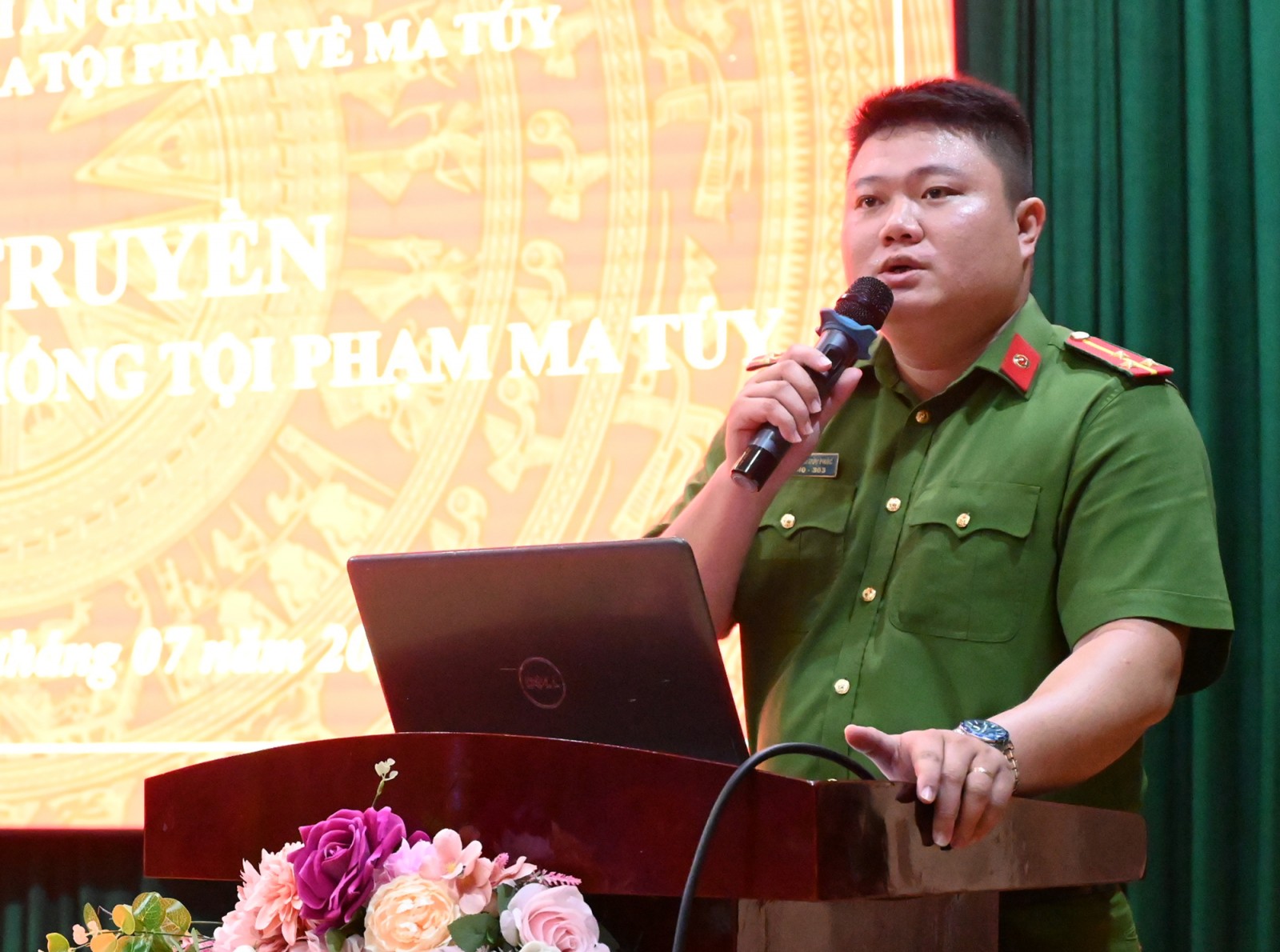 Buổi tuyên truyền pháp luật về ma túy do Ban Thanh niên Công an tỉnh phối hợp với Đoàn Trường Cao đẳng Nghề Kiên Giang tổ chức. Thượng úy Nguyễn Hửu Phúc - Bí thư Chi đoàn Phòng Cảnh sát ma túy, Công an tỉnh, tuyên truyền viên cho biết: “Trong những năm gần đây, tình hình tội phạm và tệ nạn ma túy tiếp tục diễn biến phức tạp, nhất là các loại ma túy tổng hợp, ma túy “mới” xuất hiện ngày càng nhiều, len lỏi vào đời sống học đường và xã hội. Đối tượng bị lôi kéo, dụ dỗ thường là thanh thiếu niên - lứa tuổi rất dễ bị tác động bởi những lời mời gọi, dụ dỗ từ các đối tượng xấu. Ma túy không chỉ hủy hoại sức khỏe, tinh thần, tương lai của mỗi cá nhân mà còn là nguyên nhân trực tiếp dẫn đến các hành vi phạm tội khác, làm mất an ninh, trật tự và gây ra nhiều hệ lụy nghiêm trọng”.