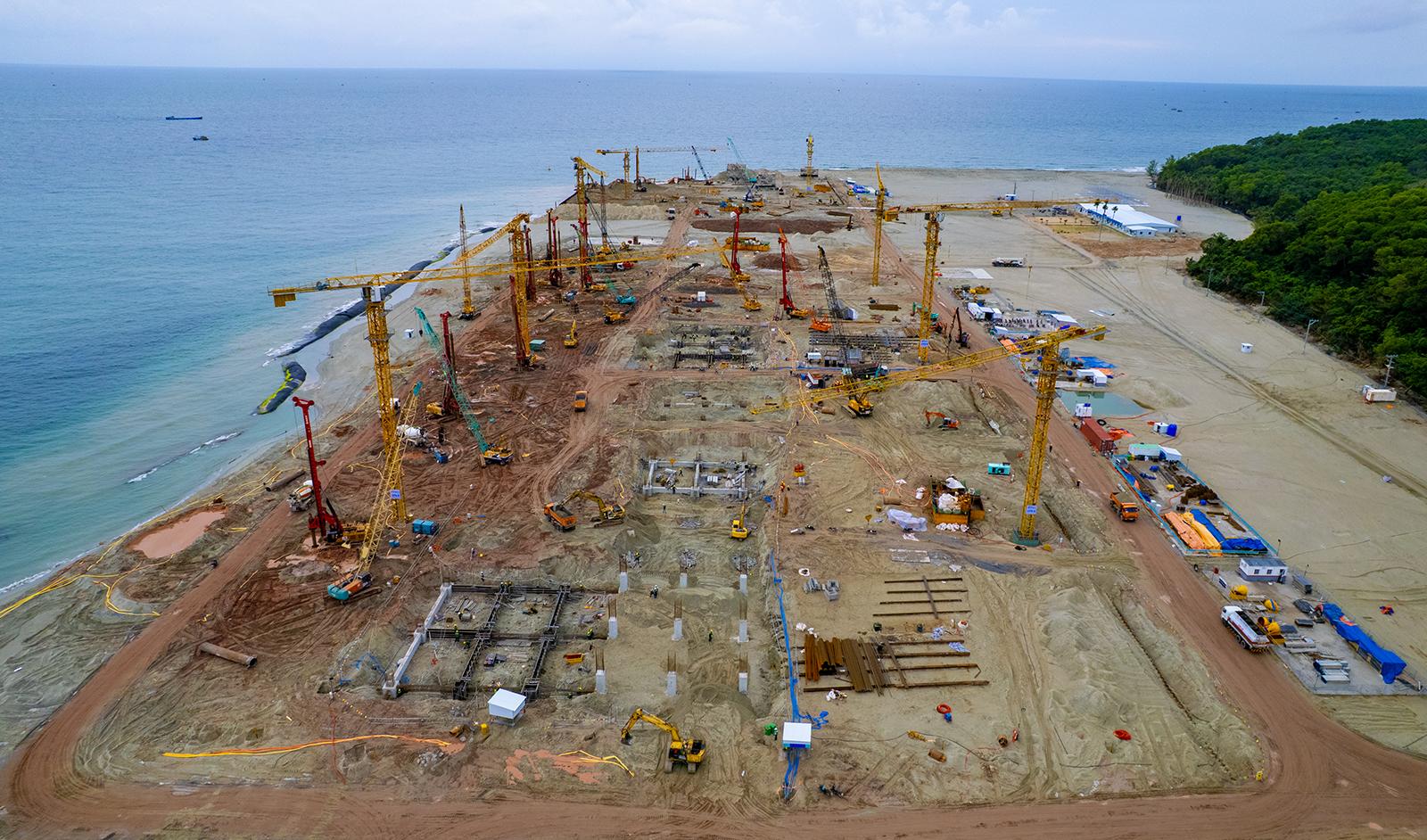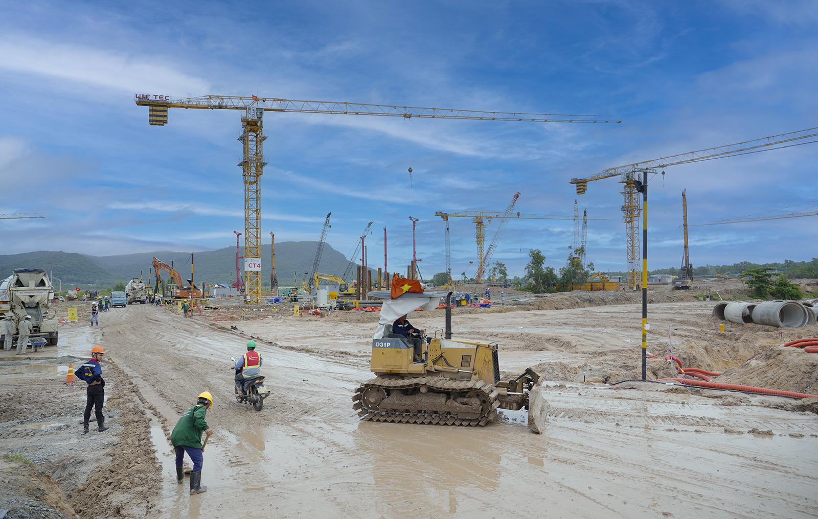 Kỹ sư và công nhân thi công dự án mở rộng Cảng hàng không quốc tế Phú Quốc.