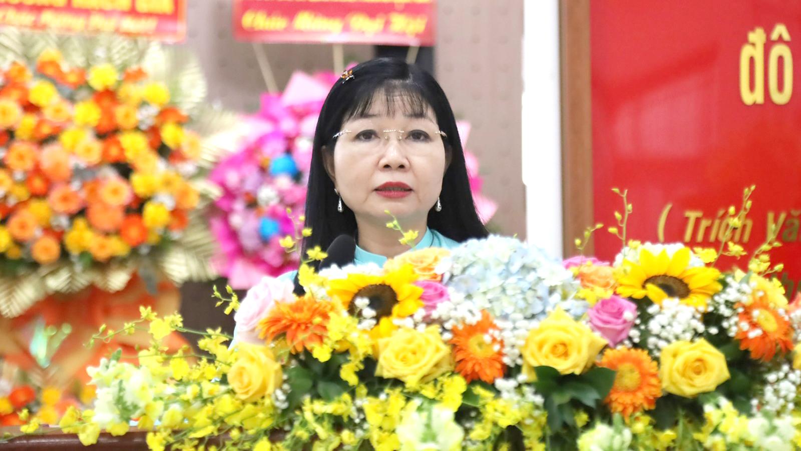 Đồng chí Trần Thị Thanh Hương, Phó Bí thư Tỉnh ủy, Trưởng đoàn Đại biểu Quốc hội đơn vị tỉnh An Giang, Chủ tịch UBMTTQVN tỉnh An Giang phát biểu chỉ đạo đại hội.