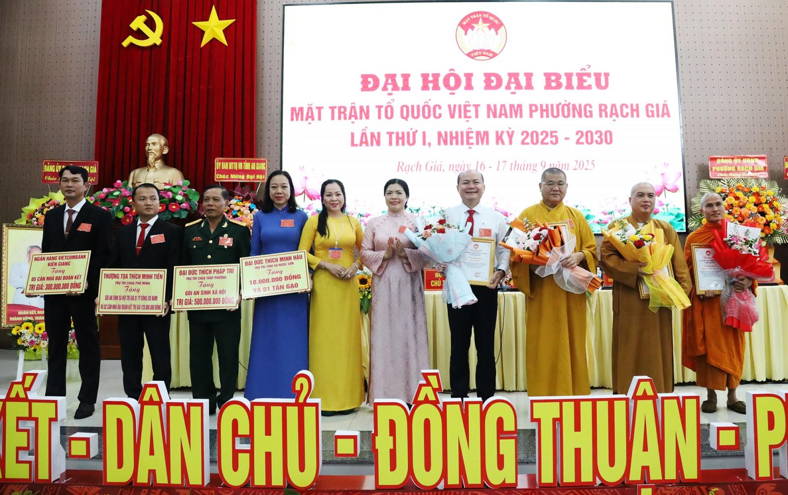 Tại đại hội, các tổ chức, cá nhân, doanh nghiệp hỗ trợ kinh phí cho UBMTTQVN phường Rạch Giá thực hiện công tác an sinh xã hội, với tổng giá trị gần 2 tỷ đồng.