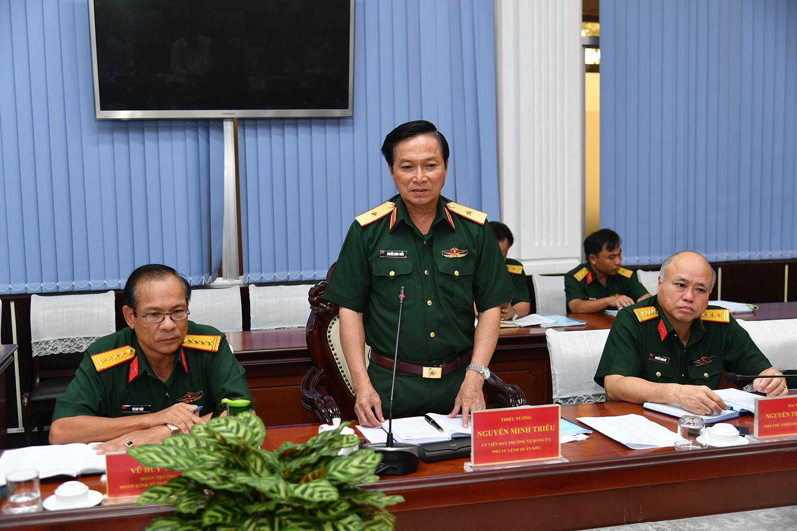 Thiếu tướng Nguyễn Minh Triều, Phó Tư lệnh Quân khu 9 phát biểu tại buổi làm việc.