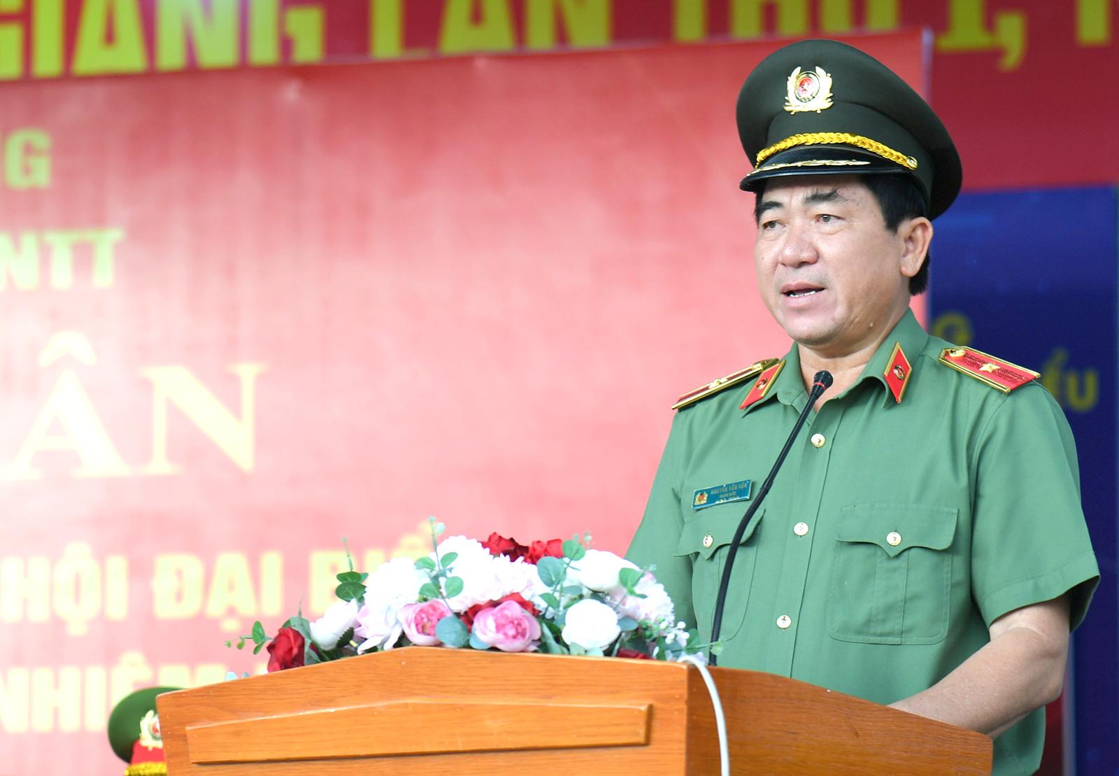 Thiếu tướng Nguyễn Văn Hận, Ủy viên Ban Thường vụ Tỉnh ủy, Giám đốc Công an tỉnh An Giang phát biểu tại lễ ra quân.