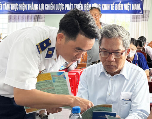 Ngư dân Rạch Giá được tuyên truyền, phổ biến Luật Cảnh sát Biển Việt Nam và các quy định về chống khai thác IUU. Ảnh: BÍCH TUYỀN
