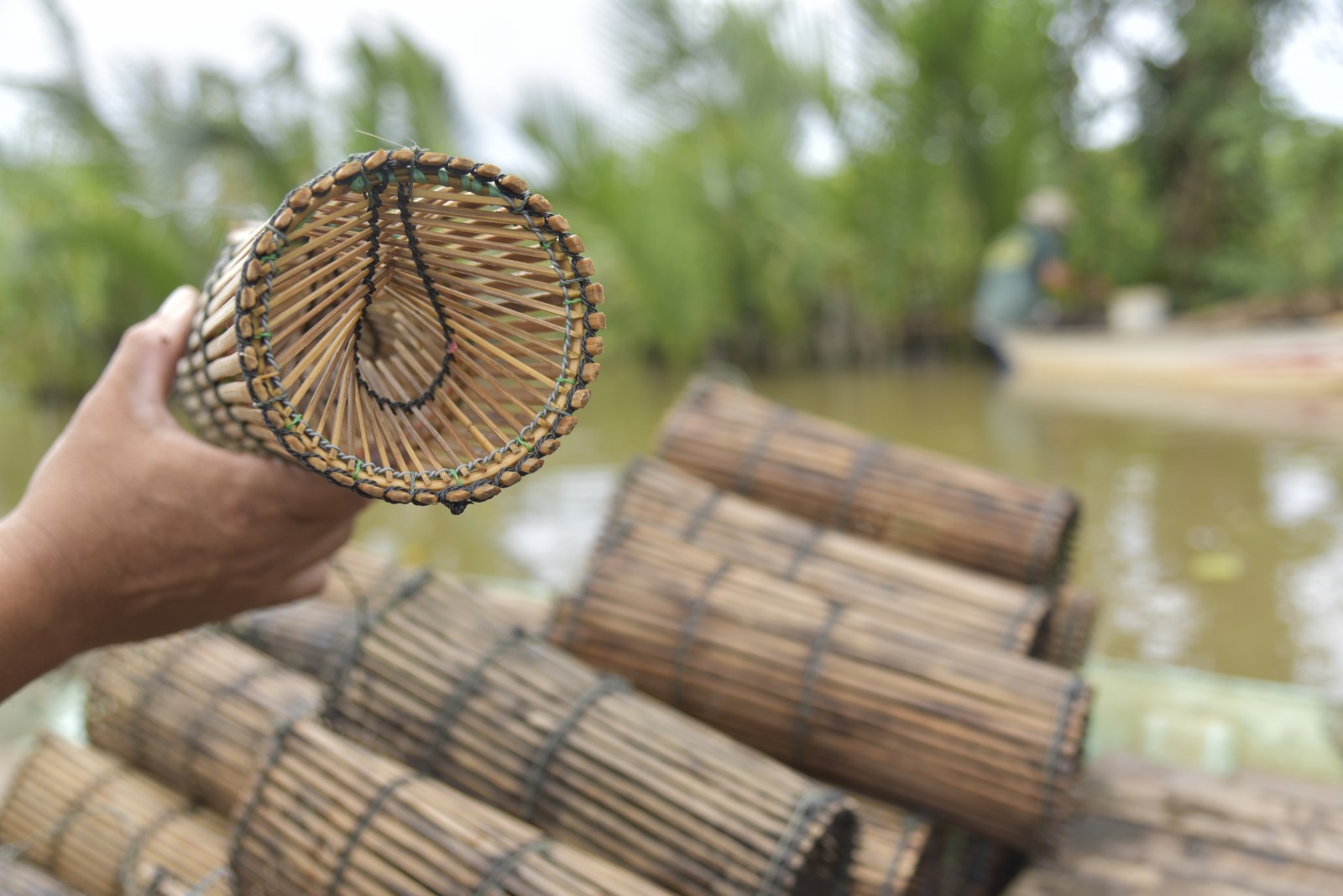 Lọp cá bống dừa được làm từ nan tre tinh xảo.