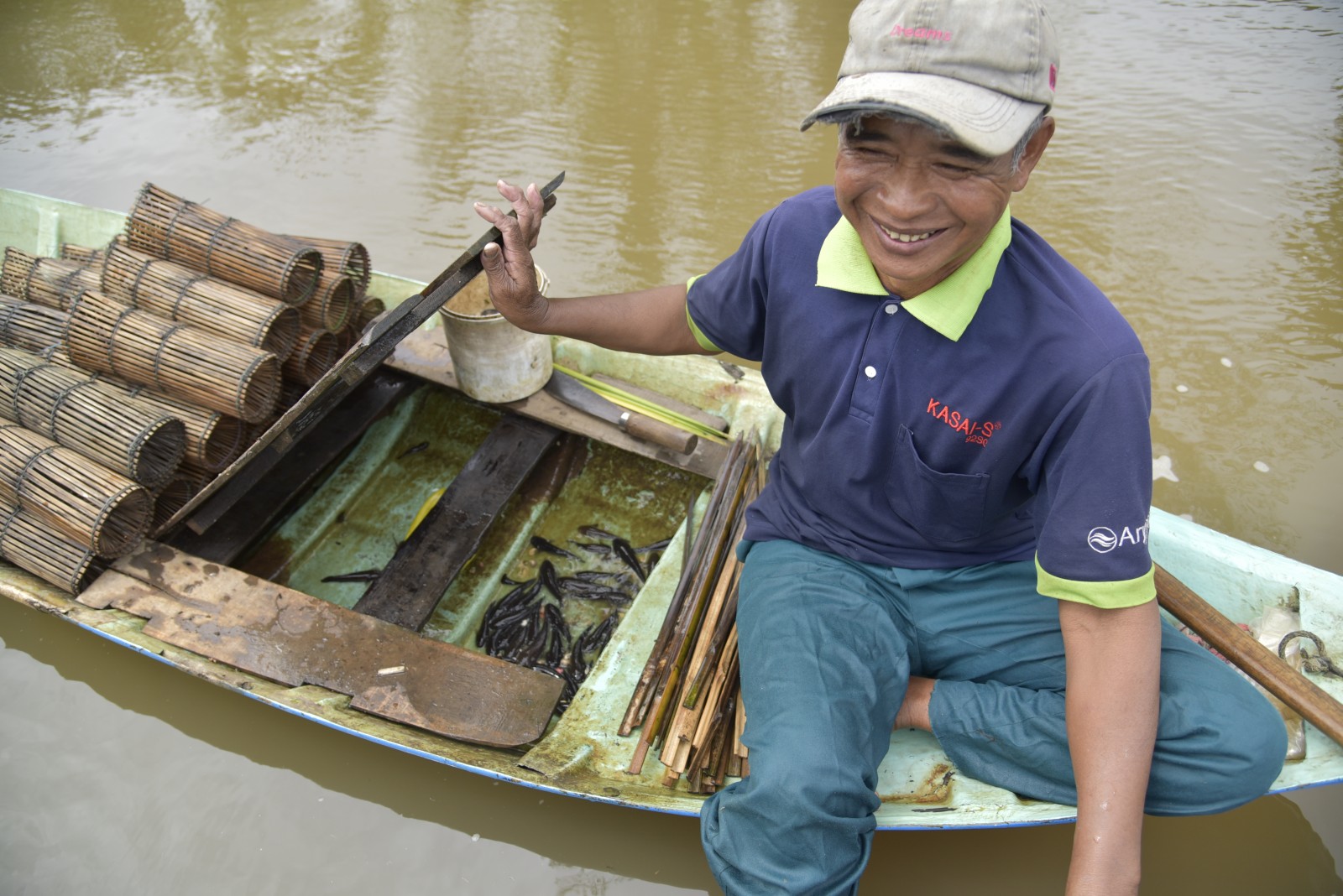 Ông Hồ Văn Mỹ (55 tuổi), có vợ là đồng bào Khmer ở ấp Xẻo Đước 1, xã An Biên, từng bỏ nghề đi làm công ty gần 10 năm, rồi cũng quay về với bến nước quen thuộc. Ông cười mộc mạc: “Nghề này cực lắm, nhưng gắn bó rồi thương. Đi mưa, đi gió cũng phải đi, chỉ rằm với ba mươi mới nghỉ, vì cá bống vô bập bè đẻ, đặt lọp cũng chẳng dính”.