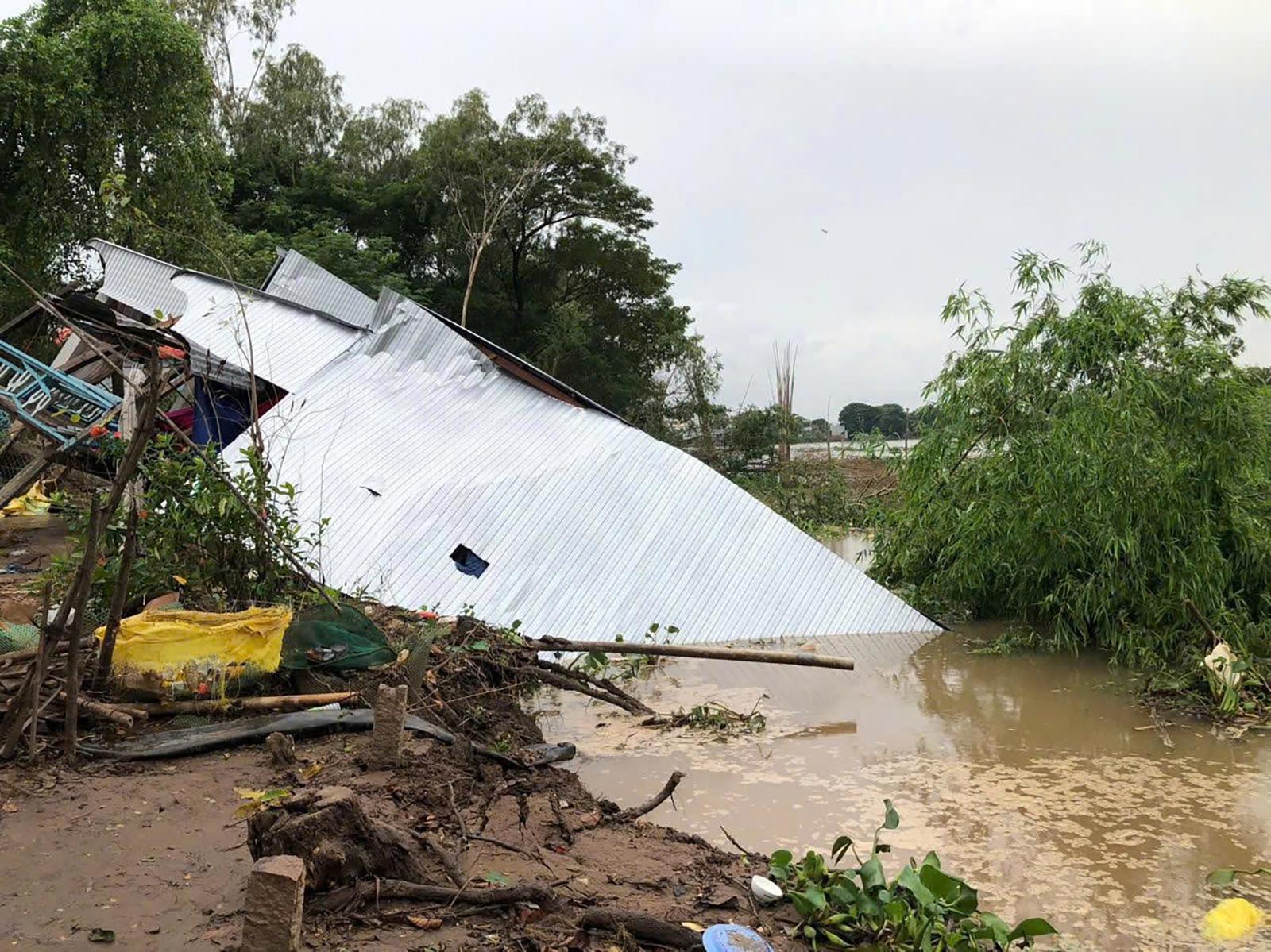 Căn nhà sụp đổ hoàn toàn xuống sông.