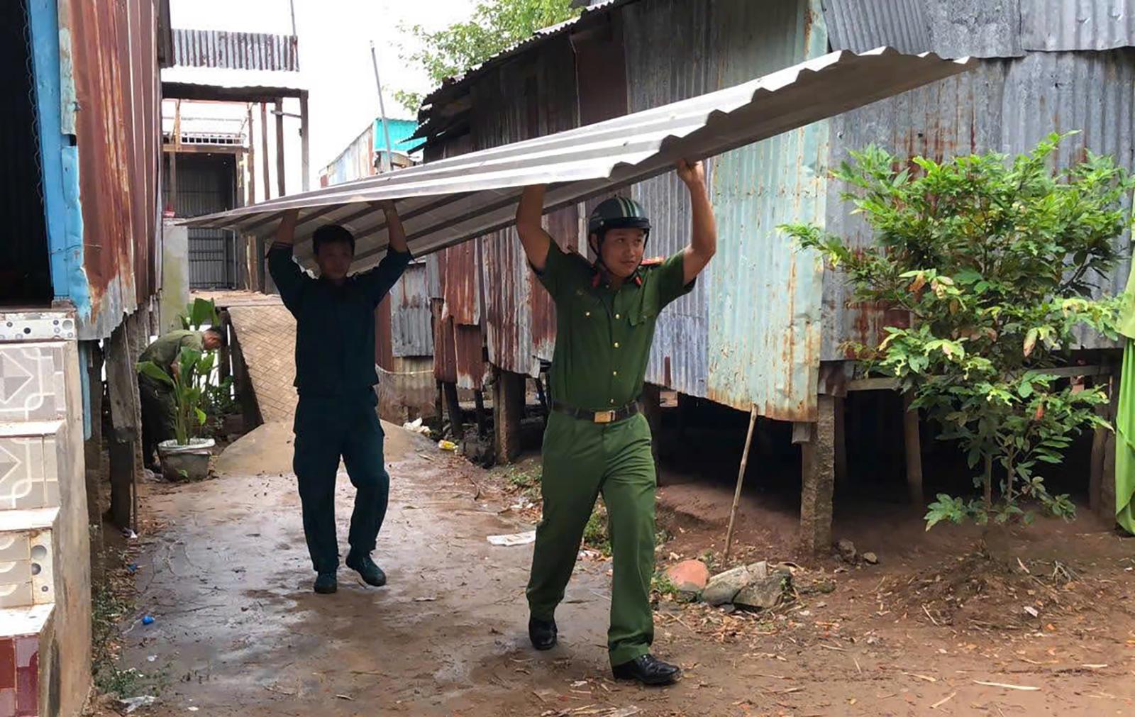 Các lực lượng hỗ trợ người dân di dời tài sản.