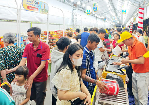 Khách mua sắm tại phiên chợ hàng Việt về nông thôn của siêu thị Tứ Sơn.