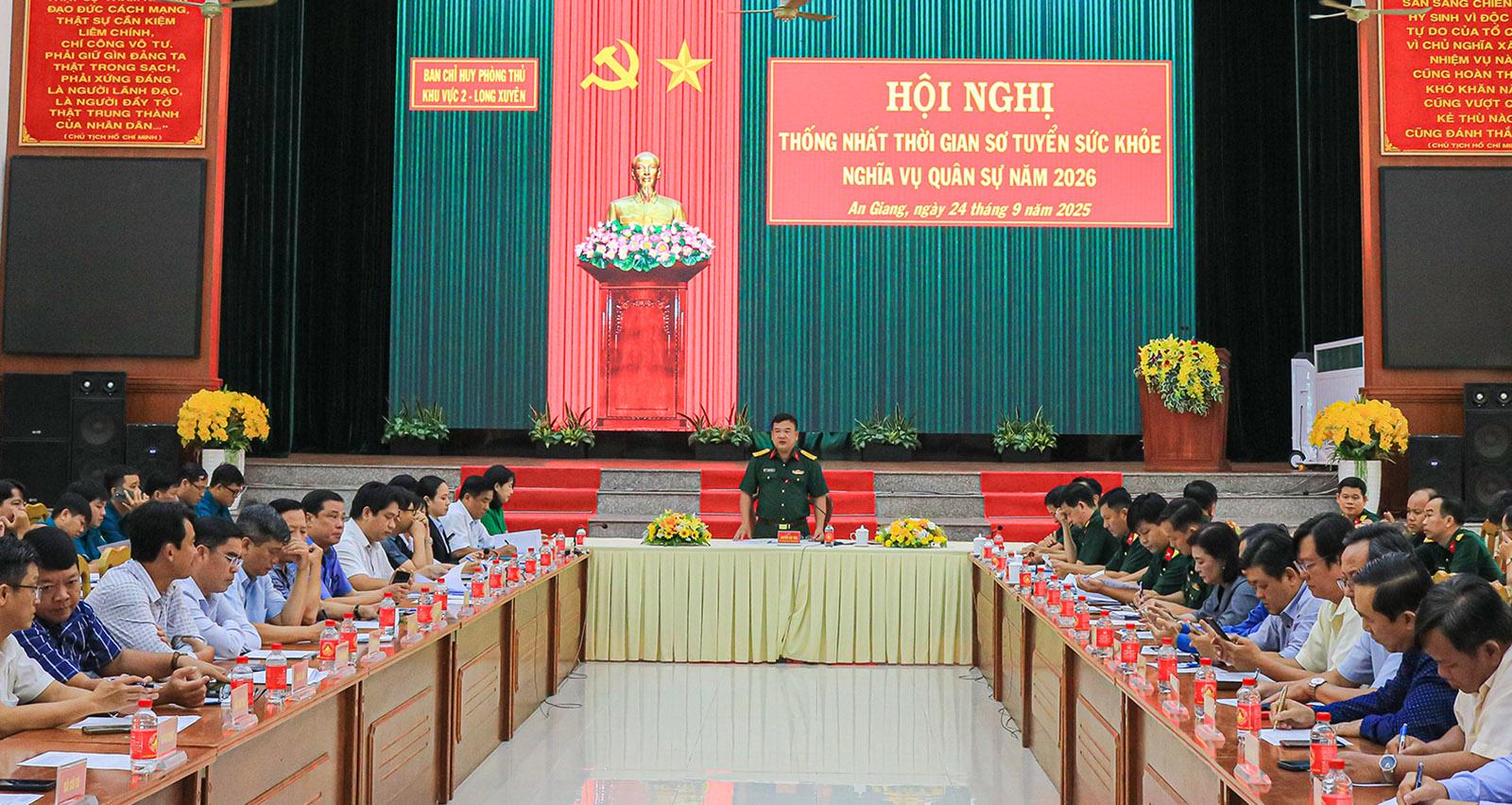 Sáng 24/9, Ban Chỉ huy phòng thủ khu vực 2 - Long Xuyên (Bộ Chỉ huy Quân sự tỉnh An Giang) tổ chức hội nghị thống nhất thời gian sơ tuyển sức khỏe nghĩa vụ quân sự năm 2026.
