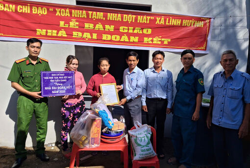 Ban Công tác Mặt trận ấp Lình Huỳnh tổ chức bàn giao nhà đại đoàn kết cho hộ có hoàn cảnh khó khăn trên địa bàn. Ảnh: HUỲNH ANH